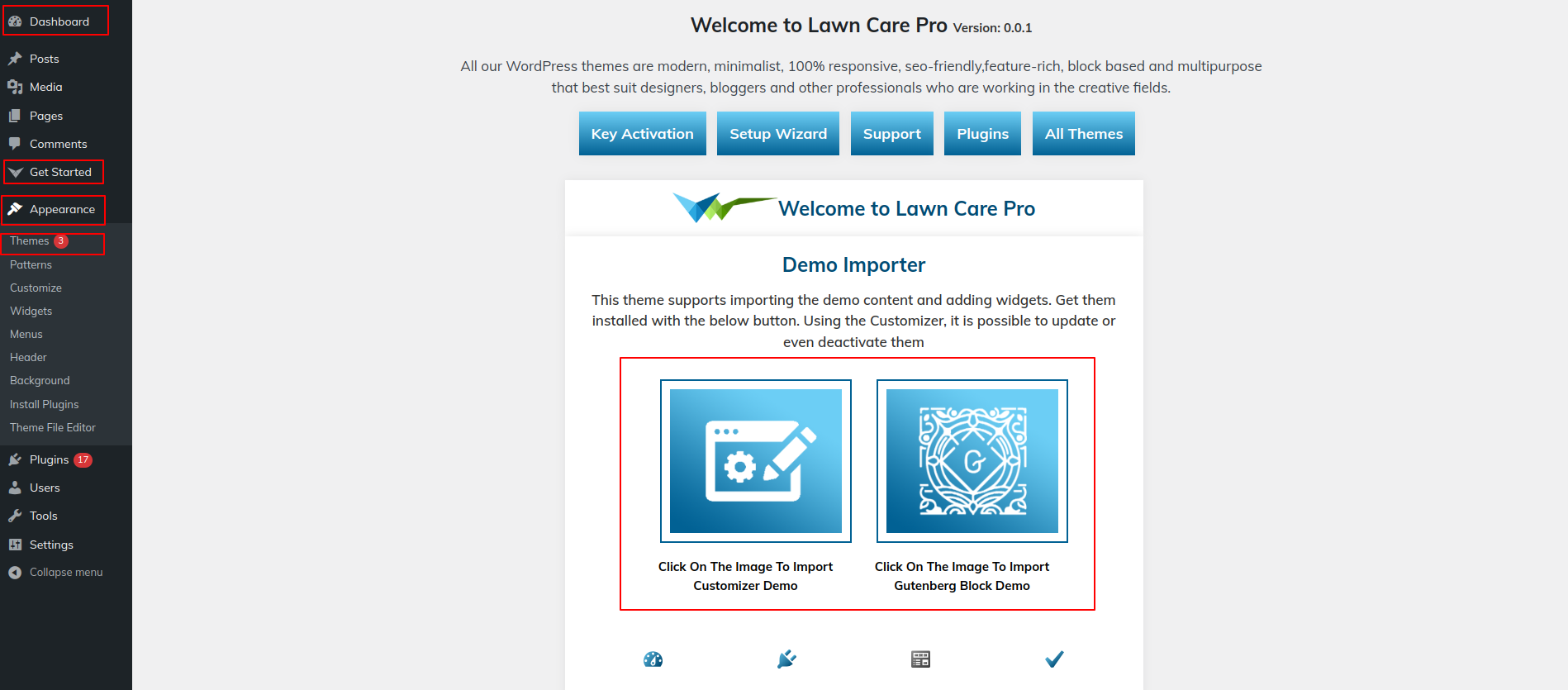 2. Import your demo content based on Gutenberg.