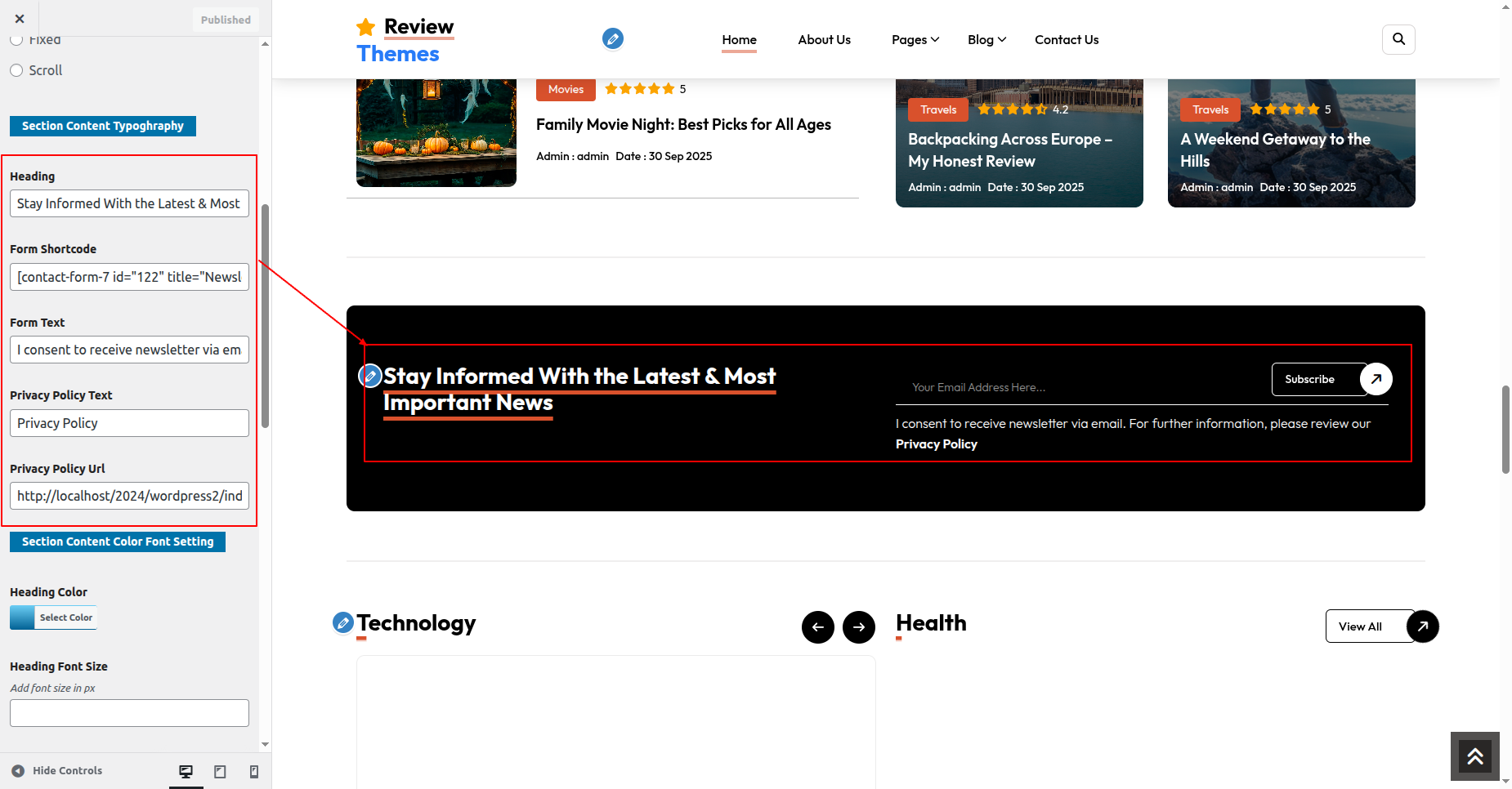 Go to Appearance >> Customize >> Theme Settings >> Newsletter Section