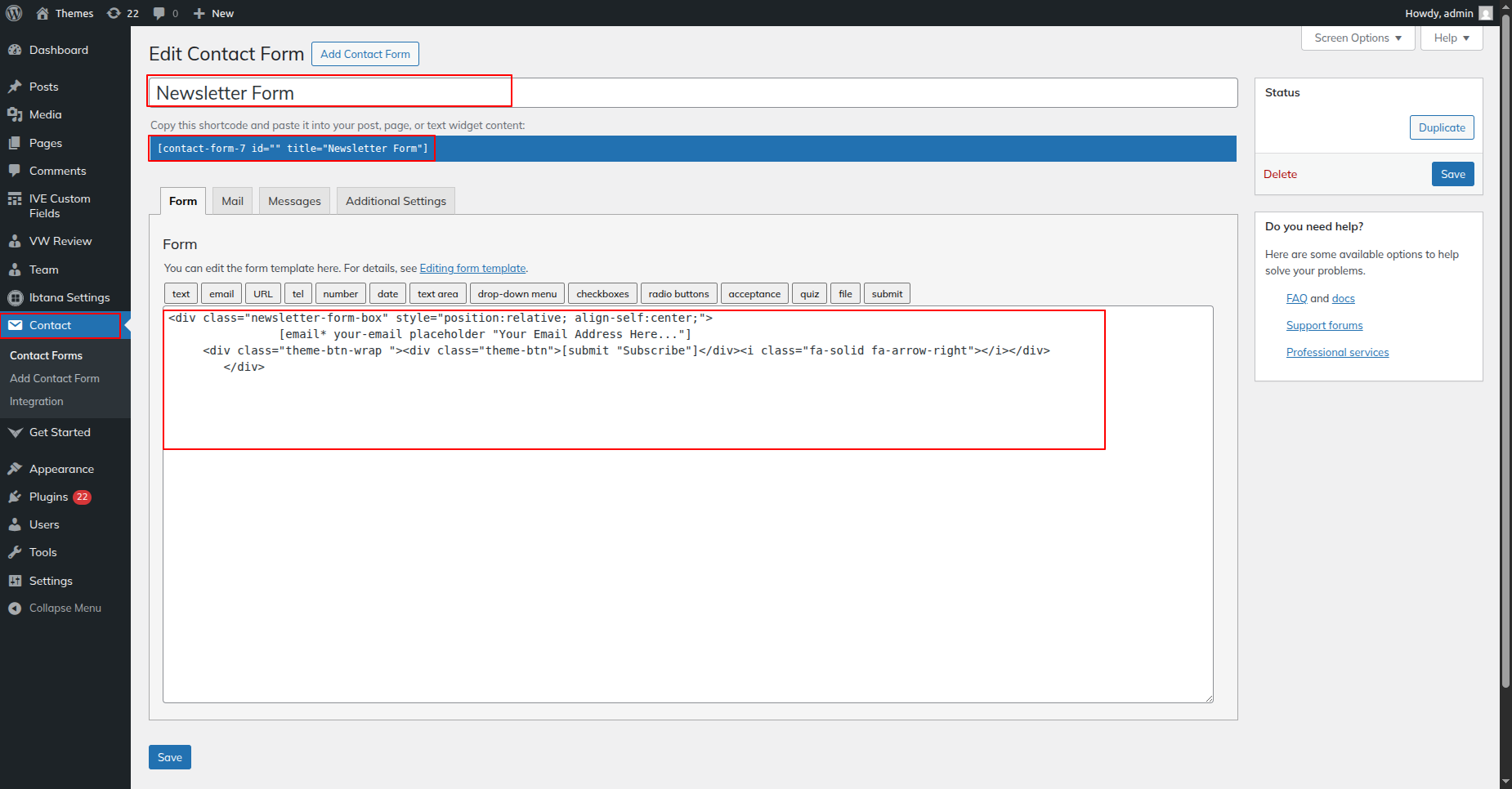 Go to Dashboard >> Contact >> Contact Form