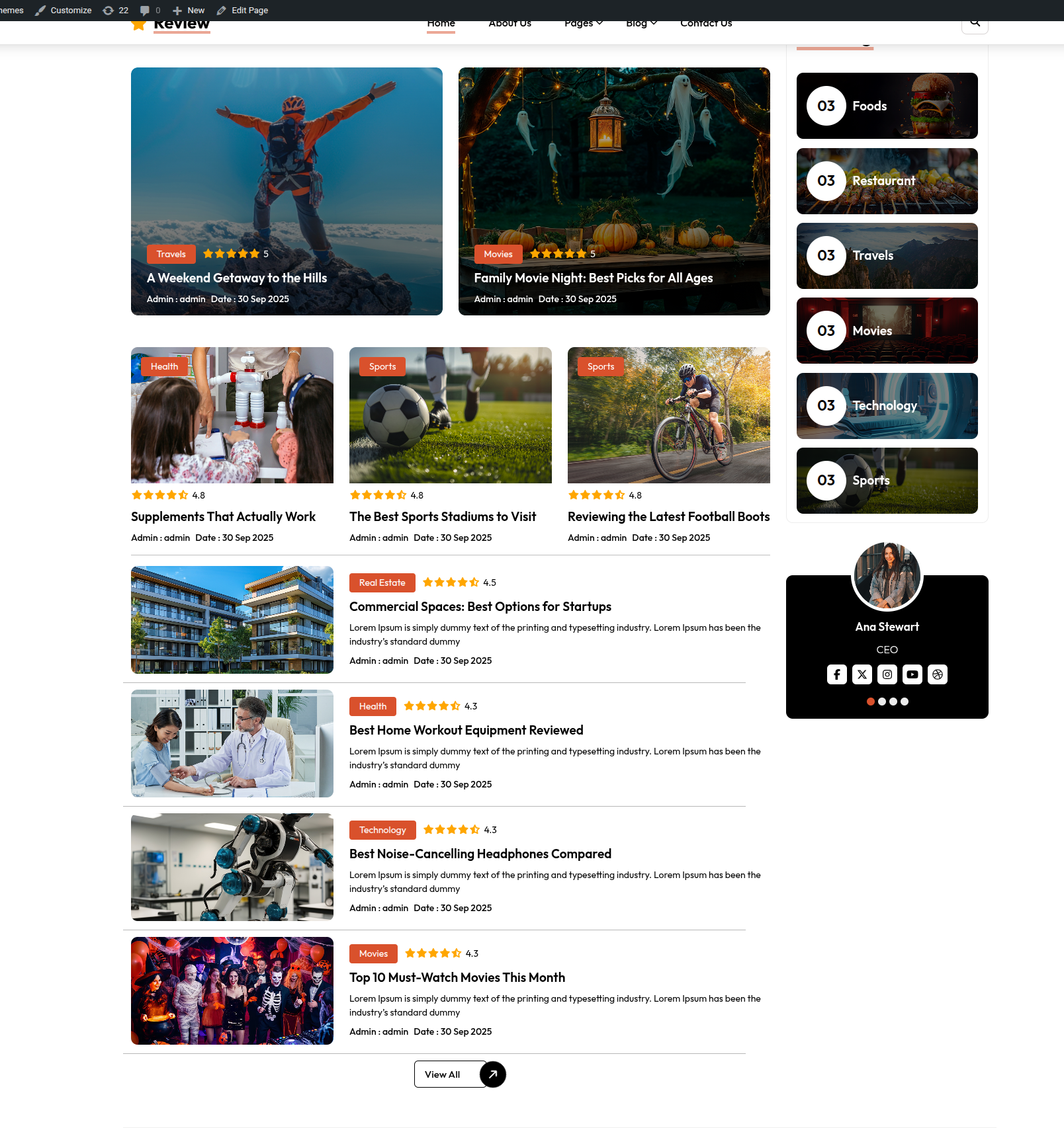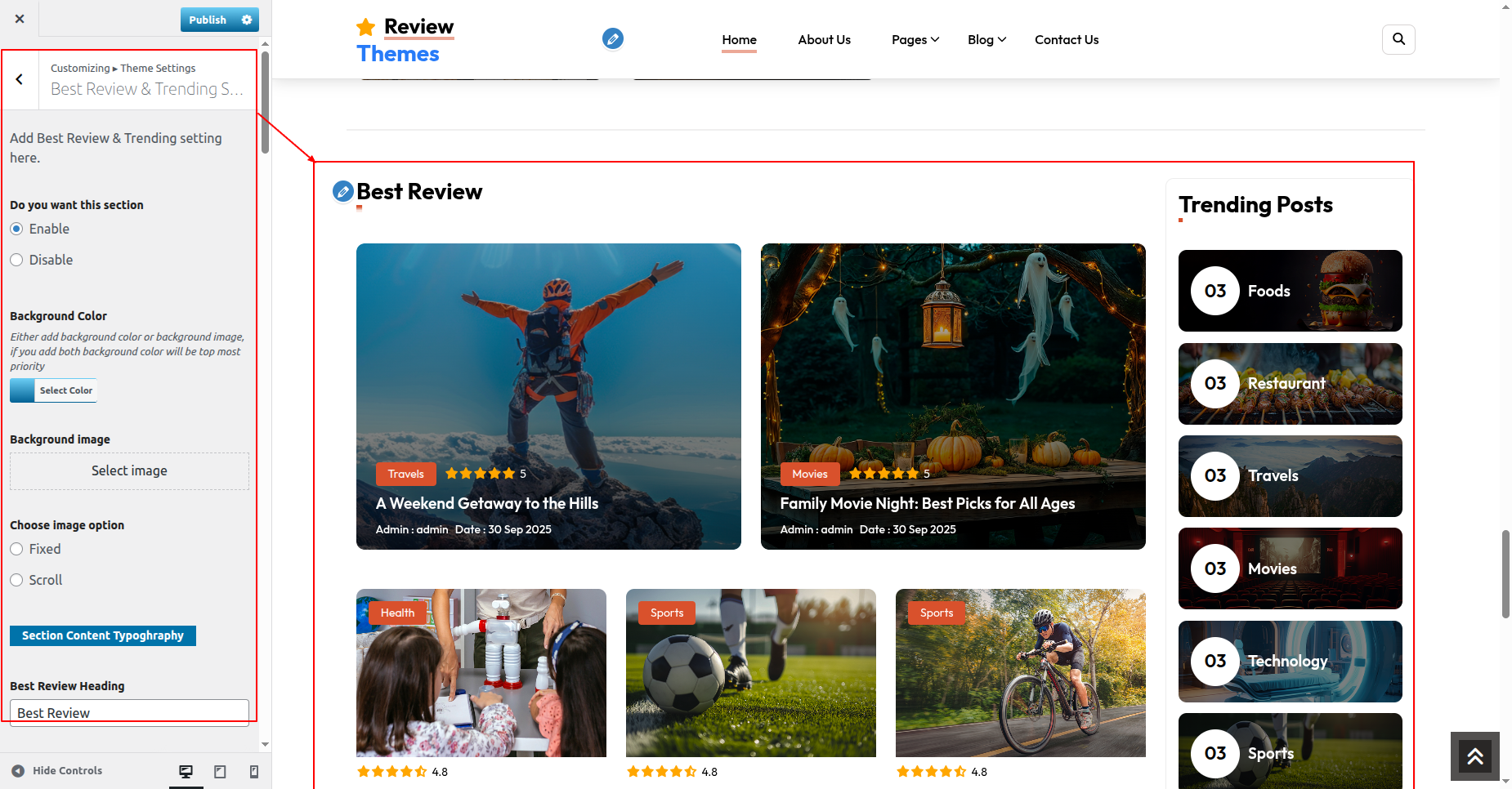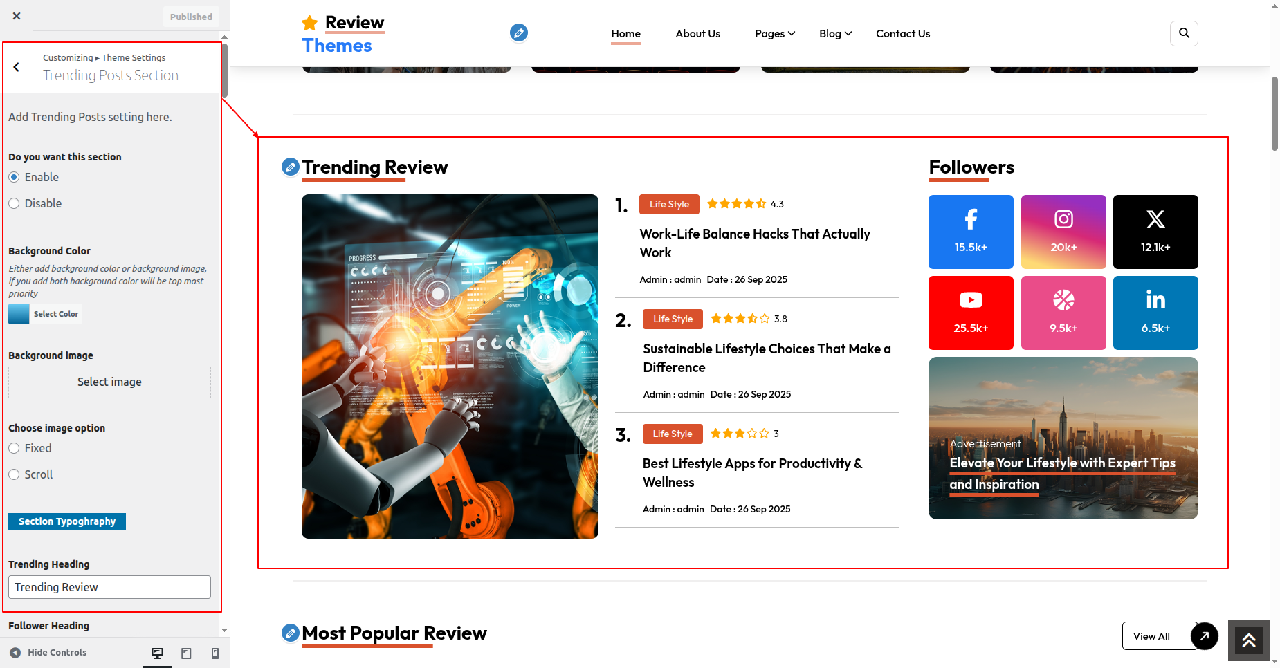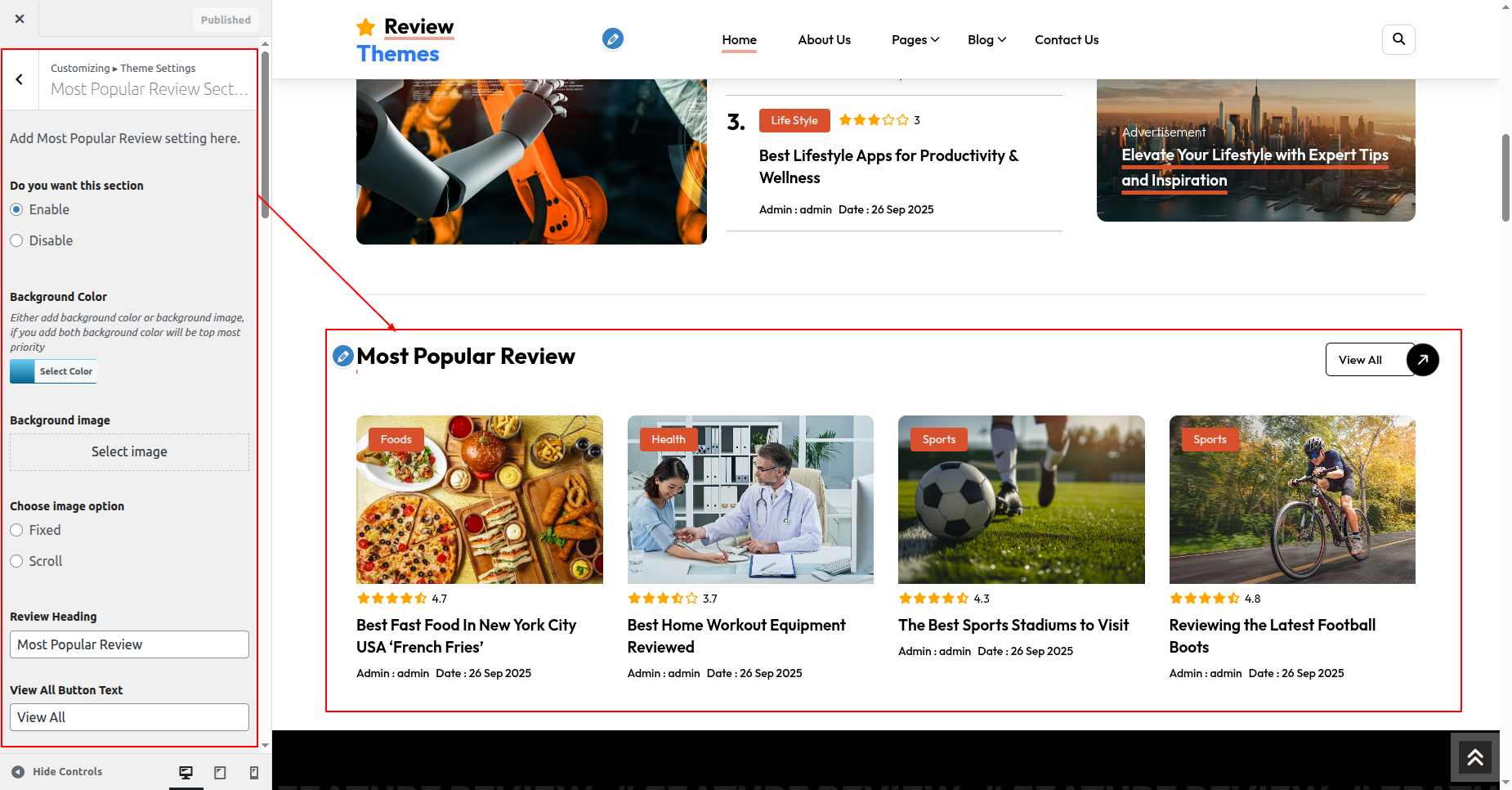 Go to Appearance >> Customize >> Theme Settings >>Popular Review Section Section