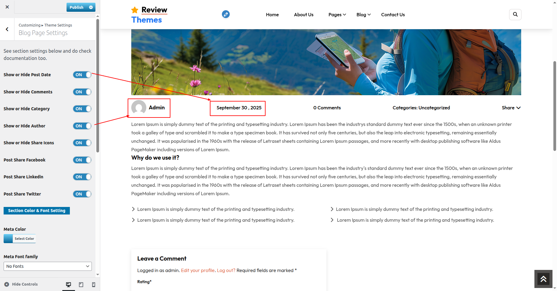 Observe these instructions to set up Blog Page Settings Section.