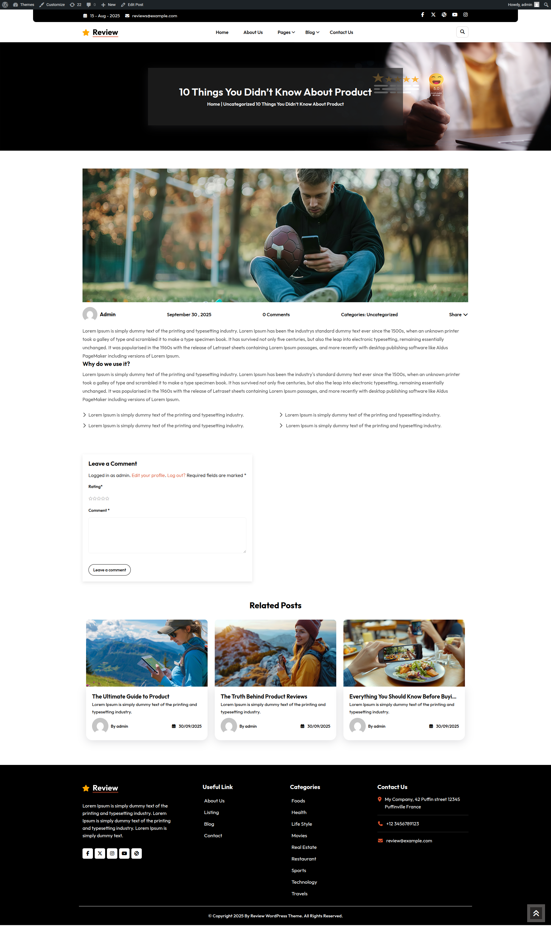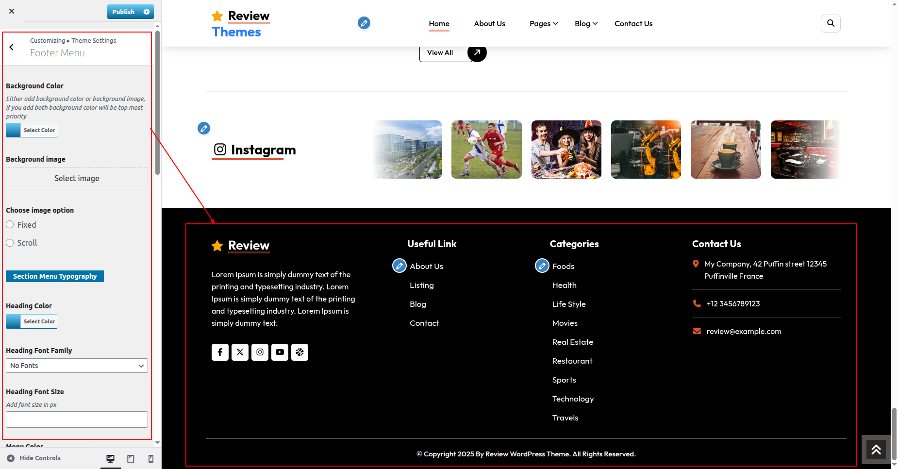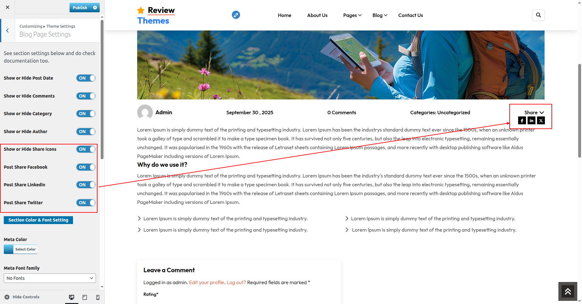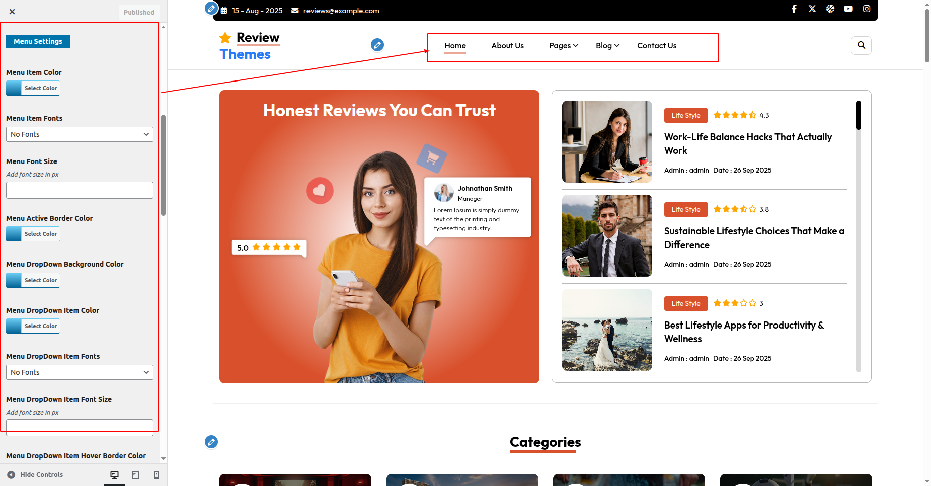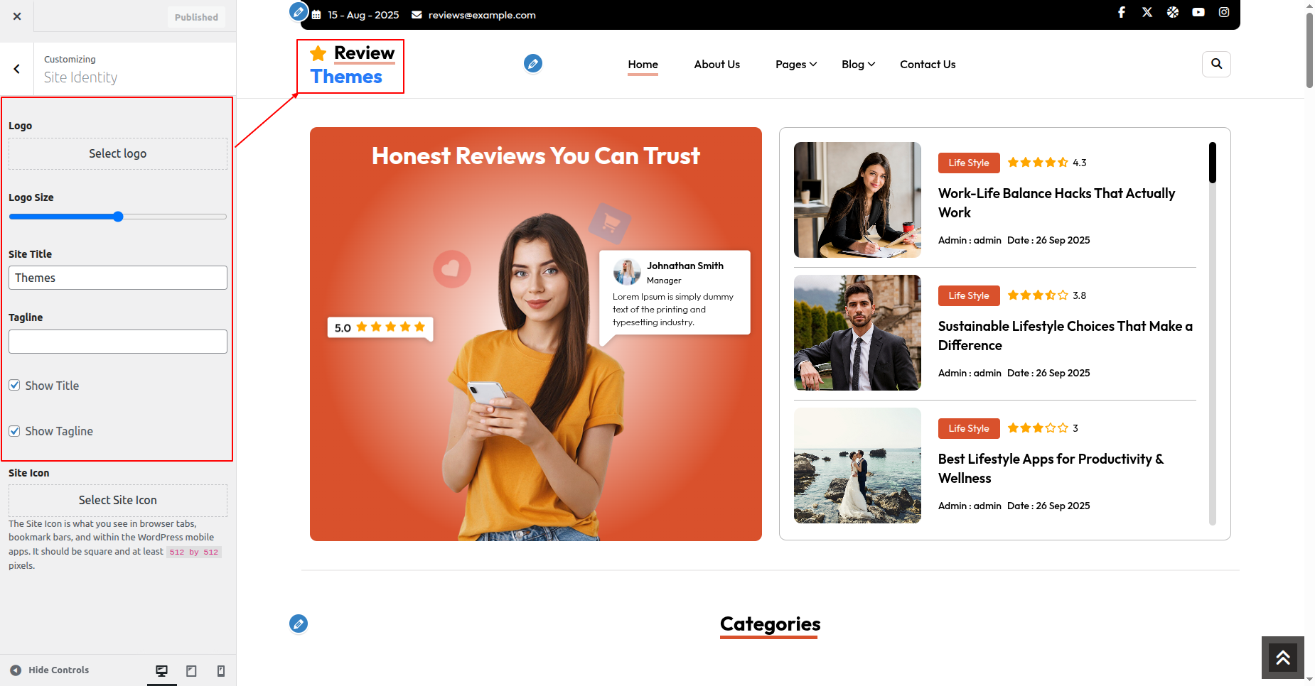 Go to Appearance >> Customize >> Theme Settings >>New Review Section
