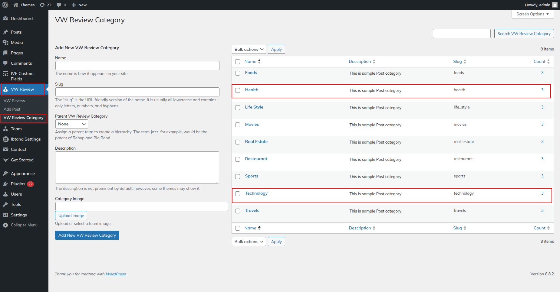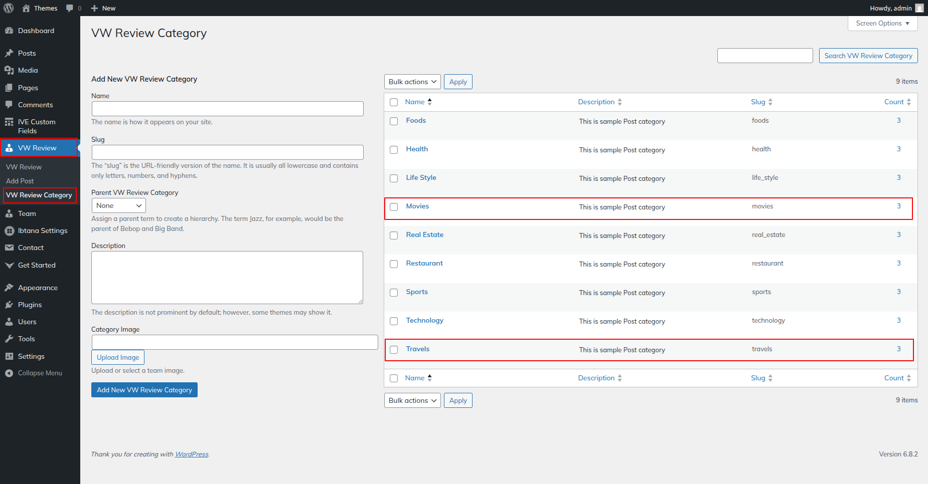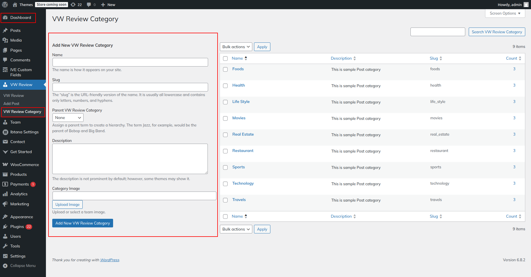 Go to Dashboard >> VW Review >> VW Review Category