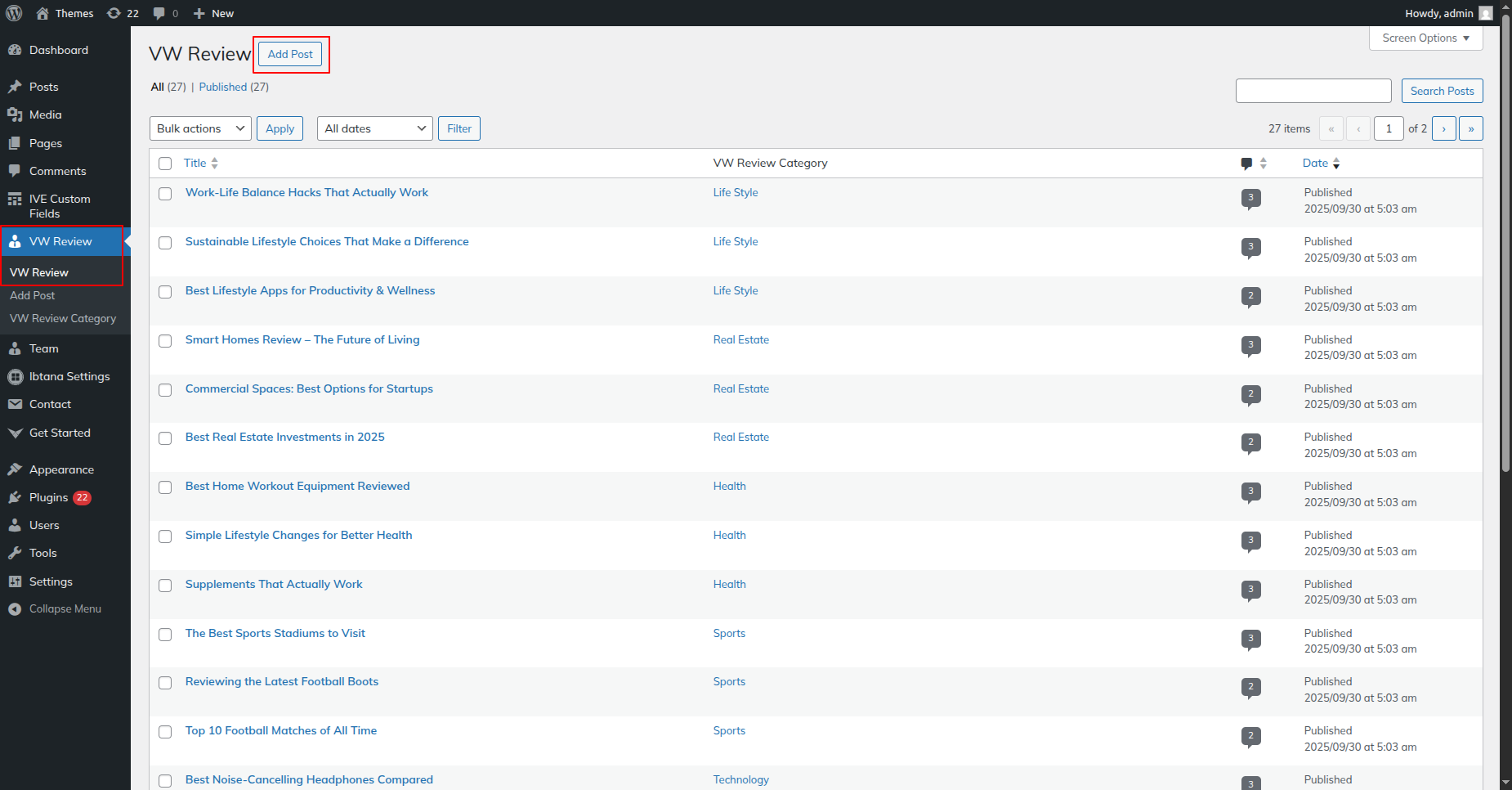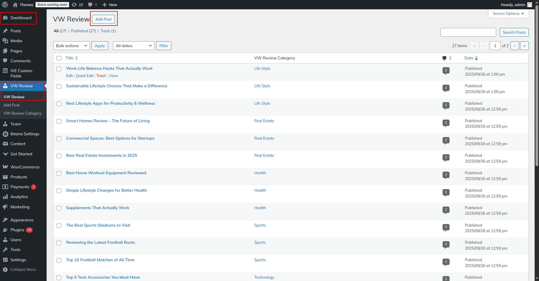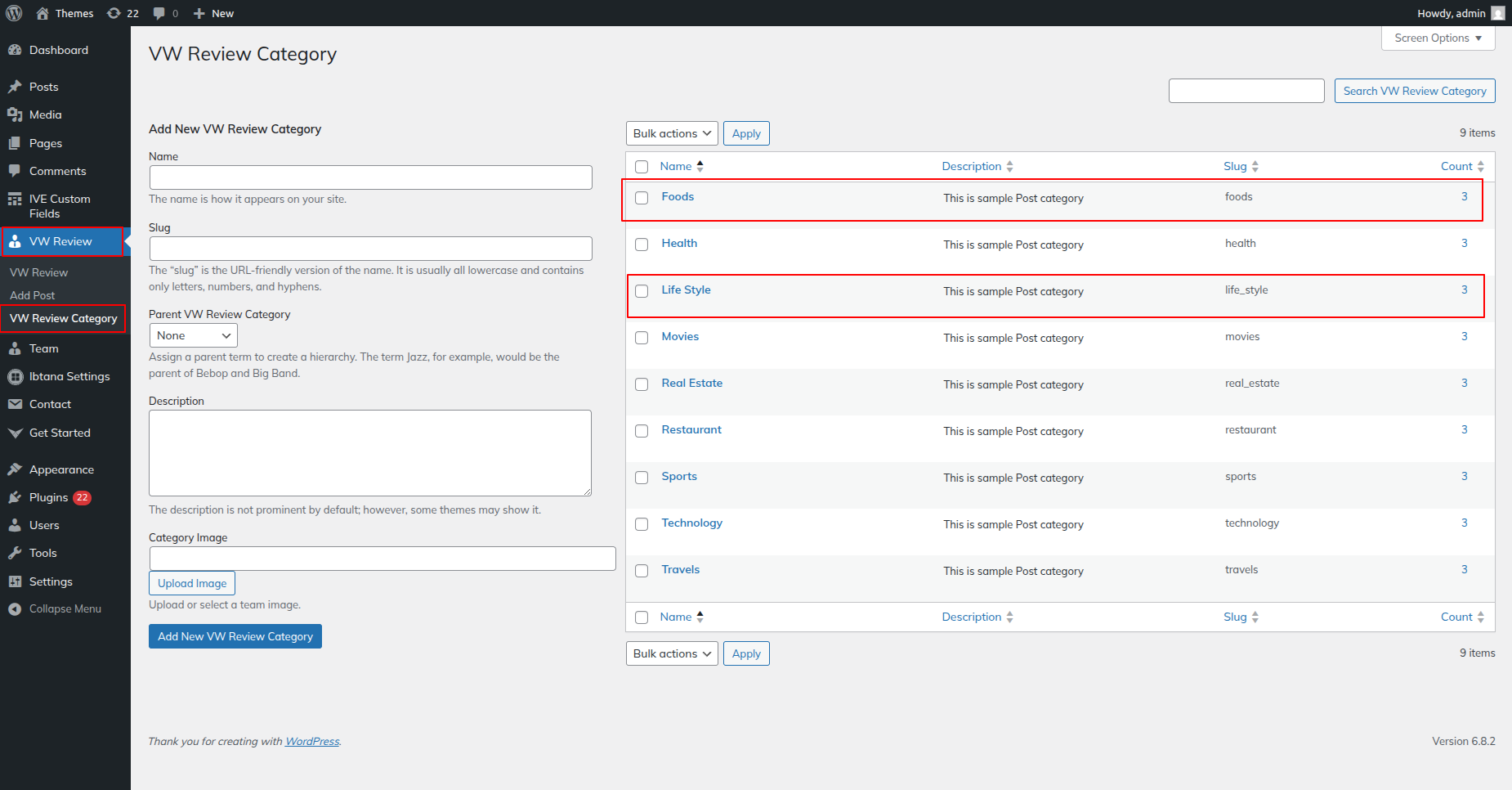 Go to Dashboard >> VW Review >> VW Review Category