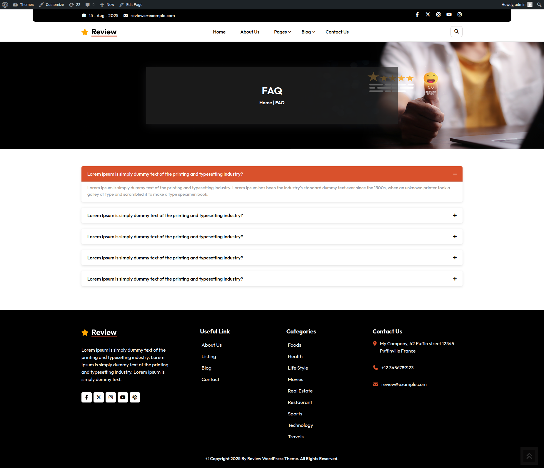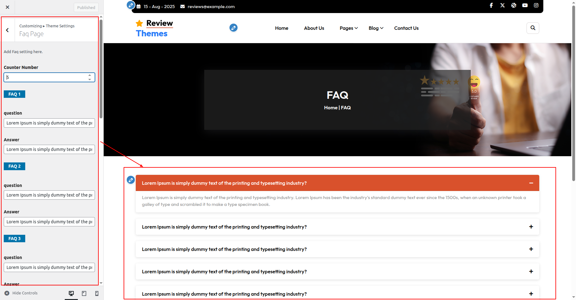 Go to Appearance >> Customize >> Theme Settings >> Faq