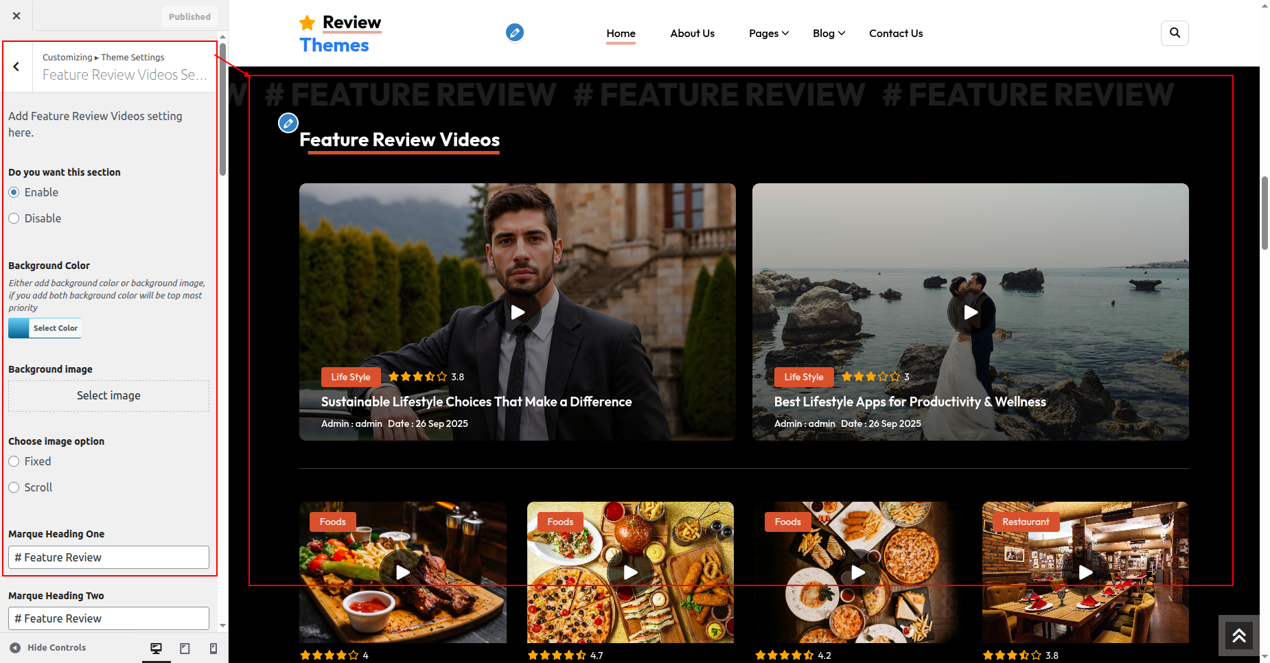 Go to Appearance >> Customize >> Theme Settings >>Feature Review Section Section