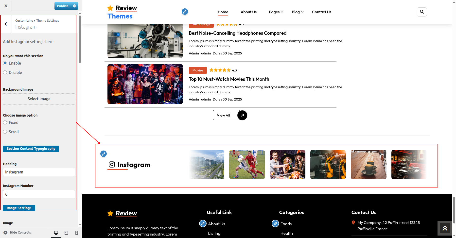 Go to Appearance >> Customize >> Theme Settings >> Instagram Section