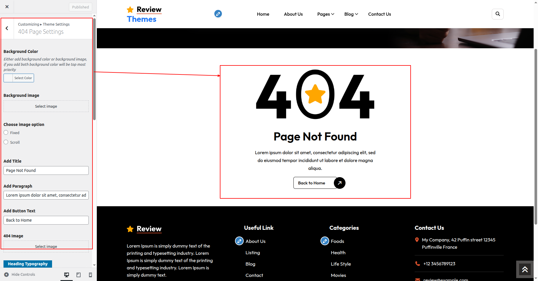 6.22 404 Page Settings