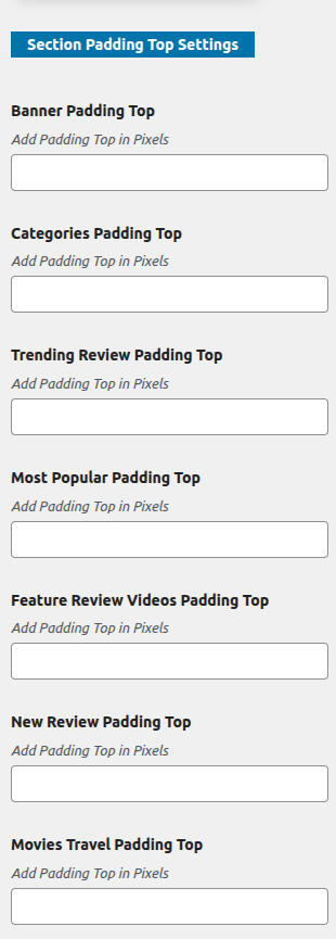 Padding Top Settings