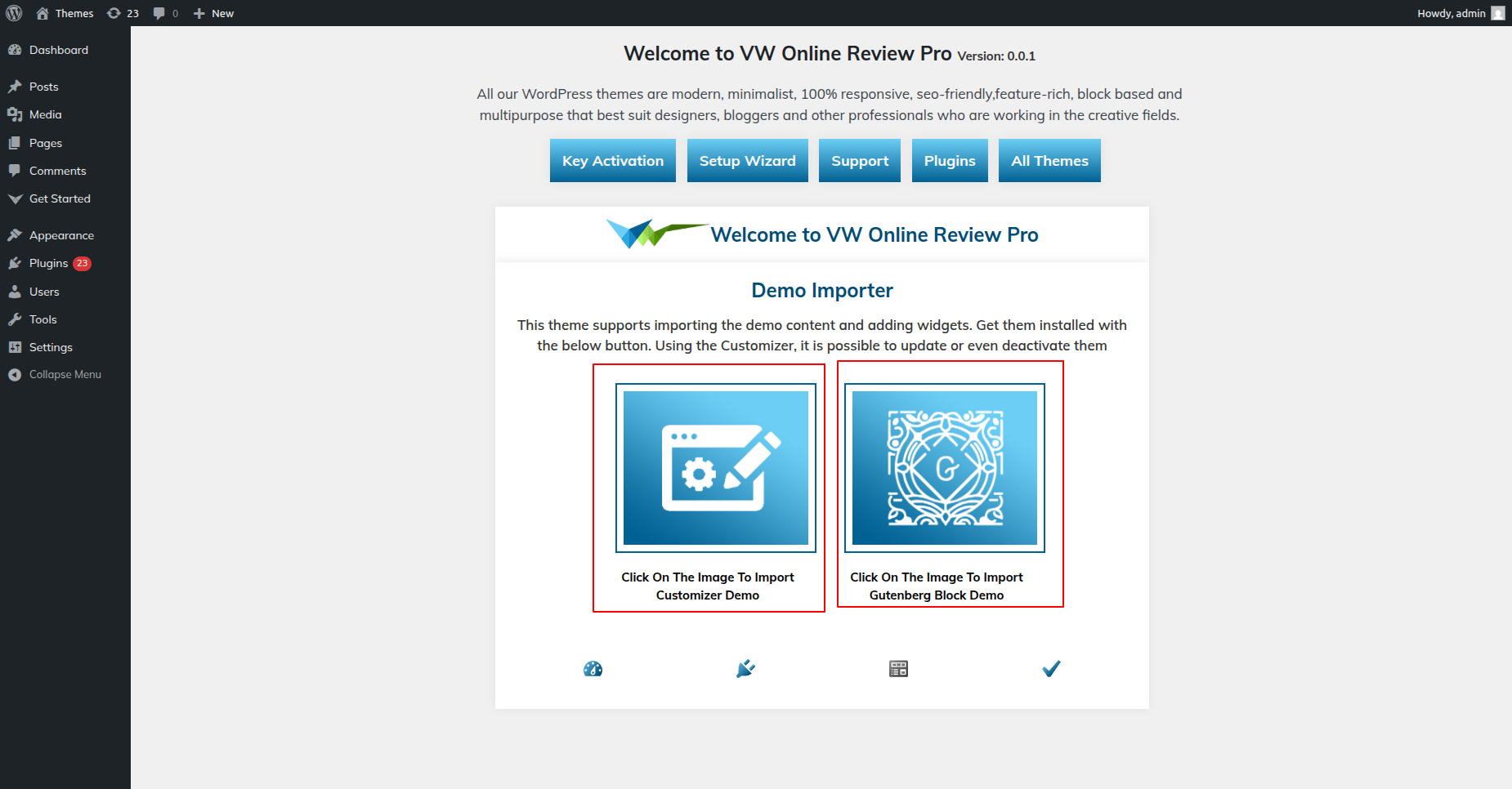2. Import your demo content based on Gutenberg.