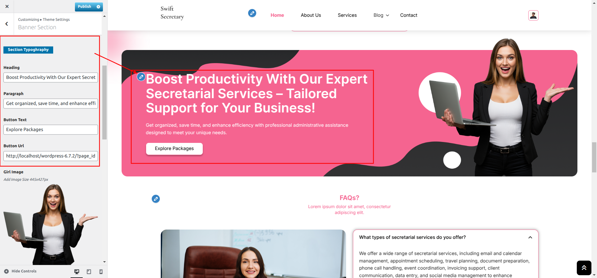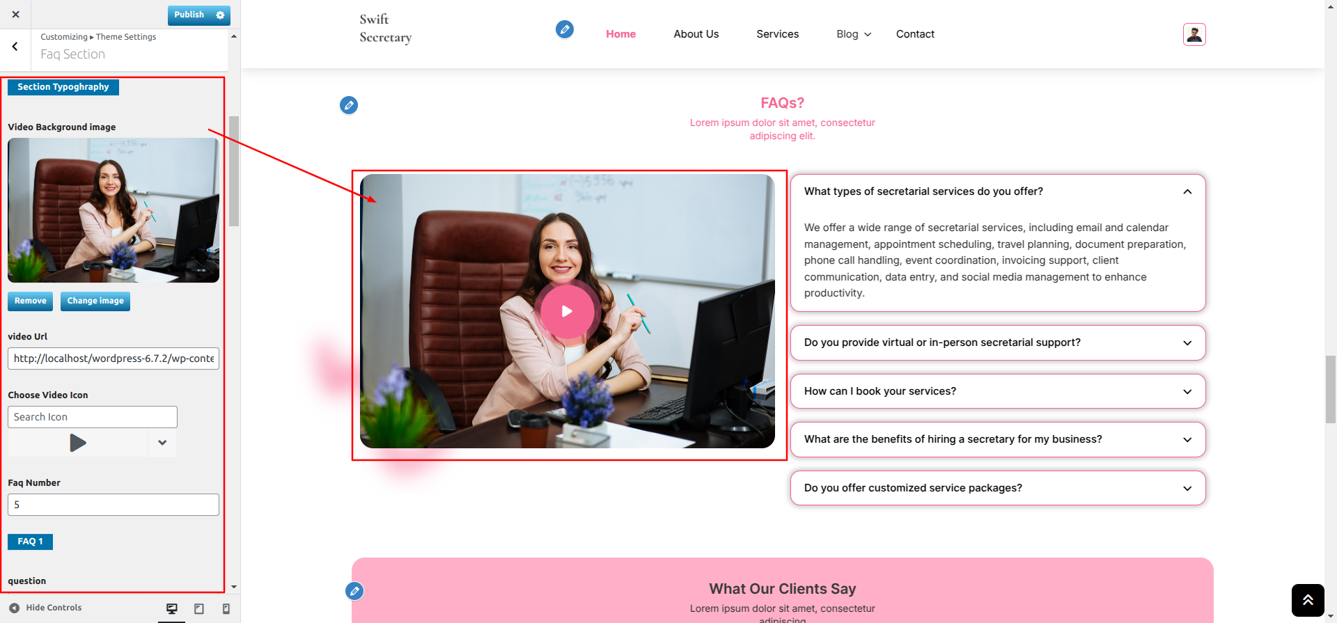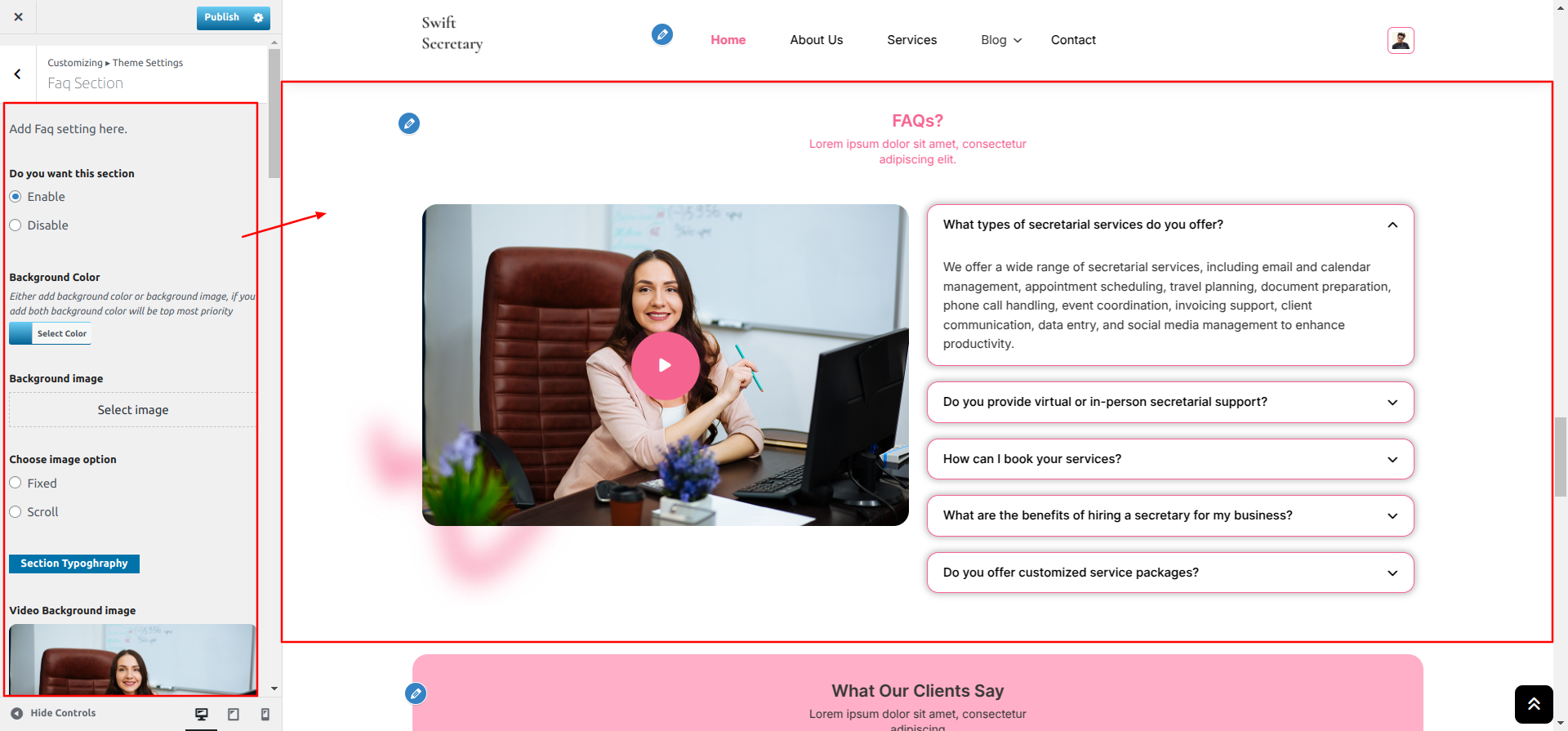 Go to Appearance >> Customize >> Theme Settings >> Faq Section