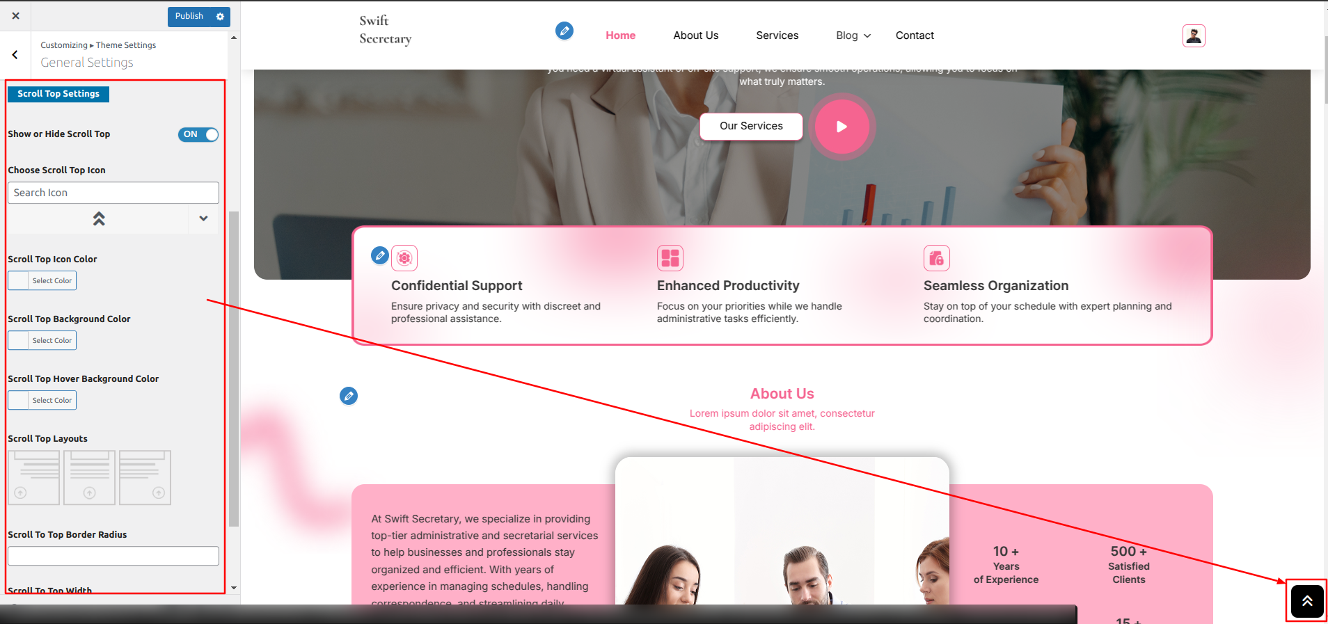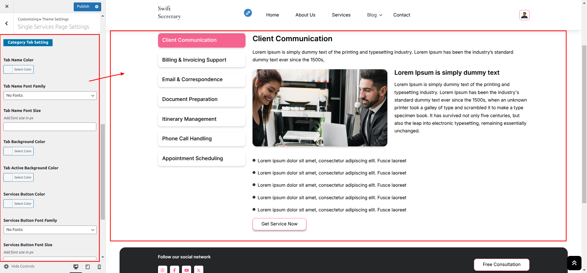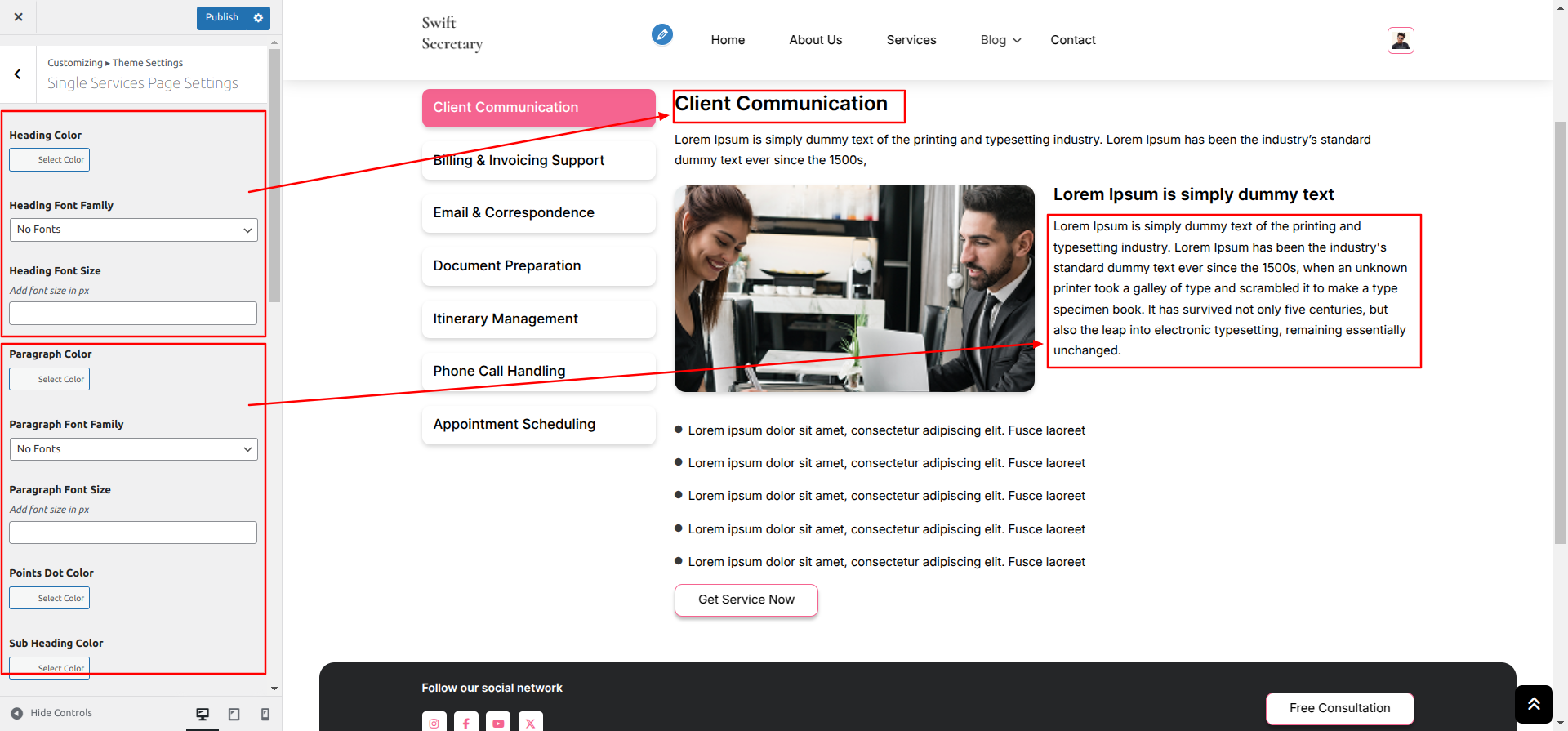 Go to Appearance >> Customize >> Theme Settings >> Single Services Page Settings