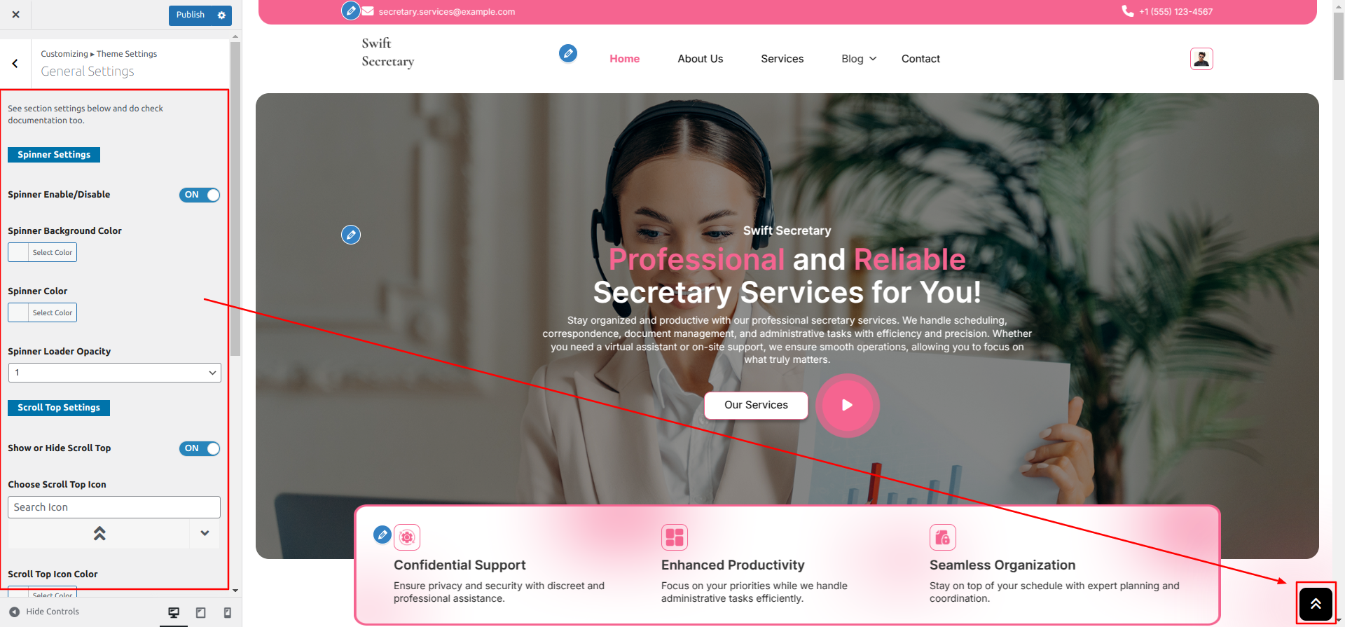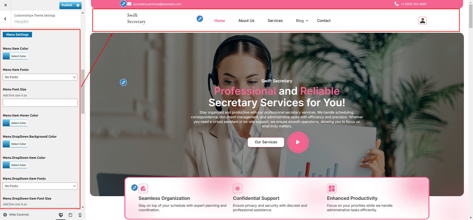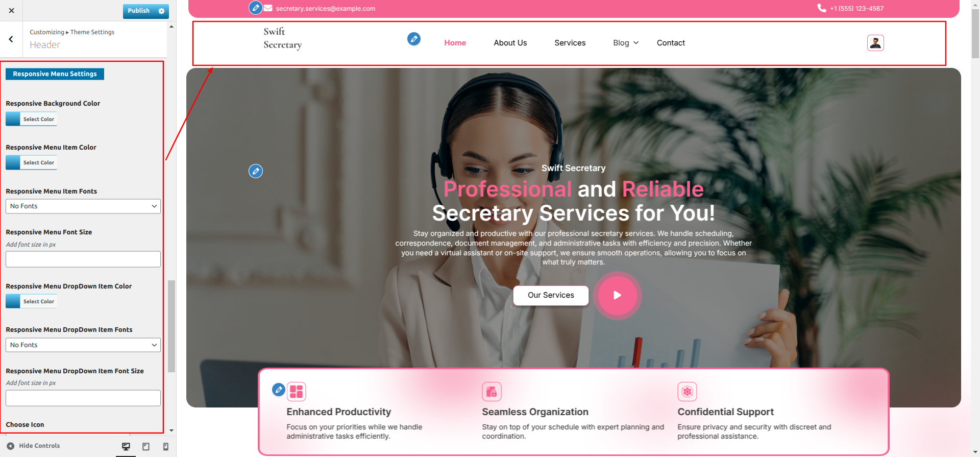 Go to Appearance >> Customize >> Theme Settings >> Our Services Section