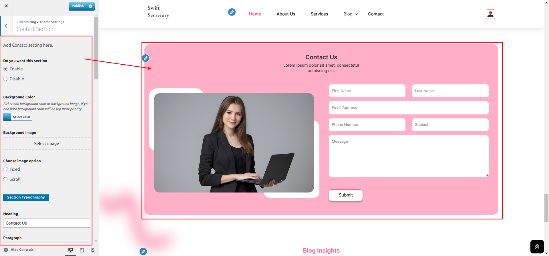 Go to Appearance >> Customize >> Theme Settings >> Blog Insights Section
