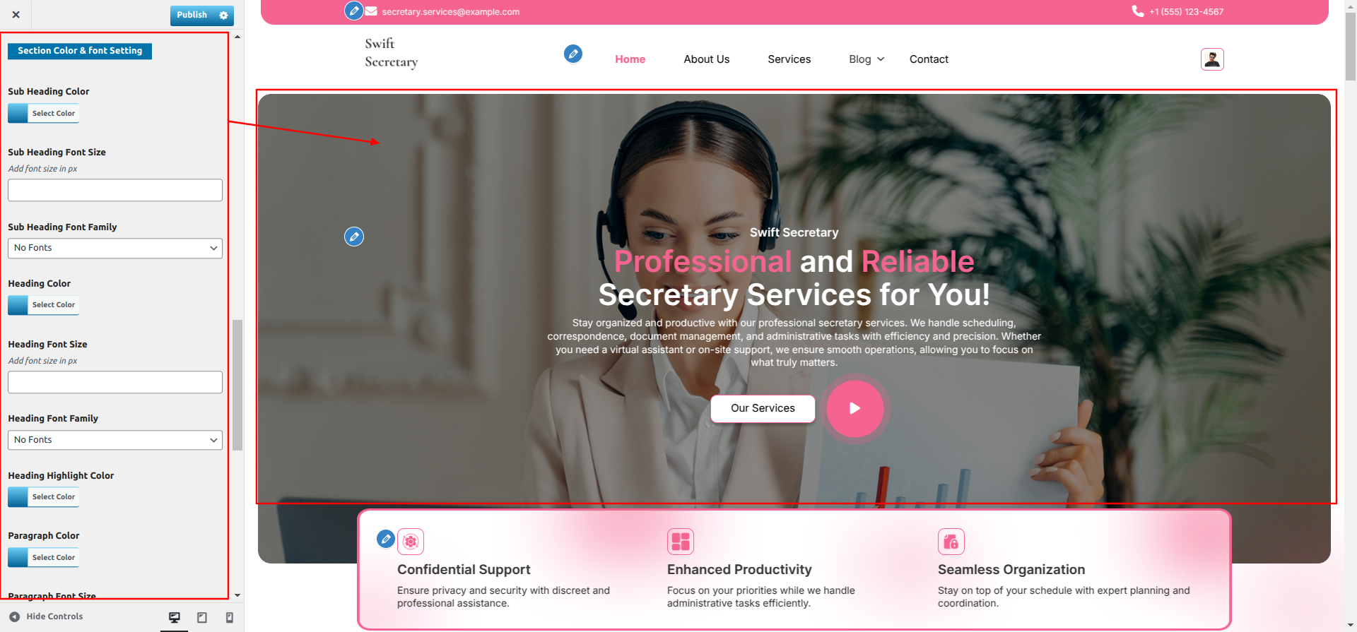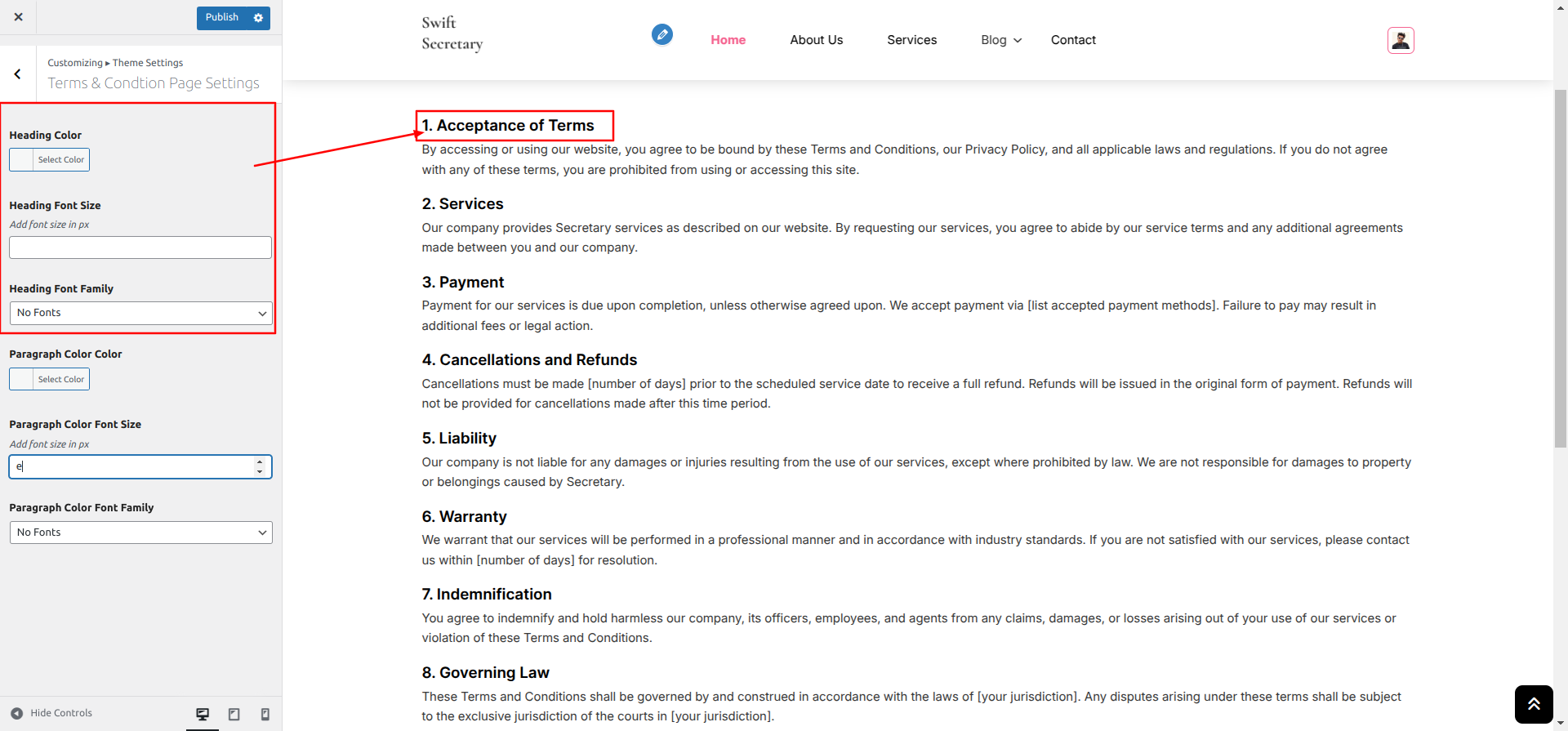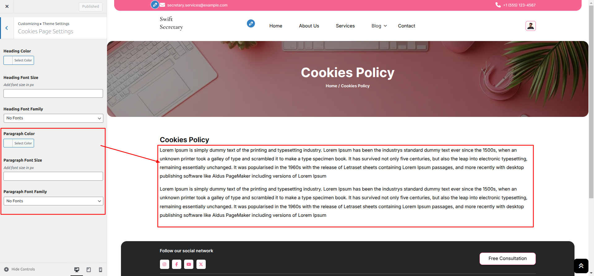 The method of changing the colour or font is quite simple. These choices are available in all customizer areas. It is a comprehensive graphic that demonstrates the typeface and colour palette. You can change the colour and font of the headings, paragraphs, and buttons with a single glance or click.