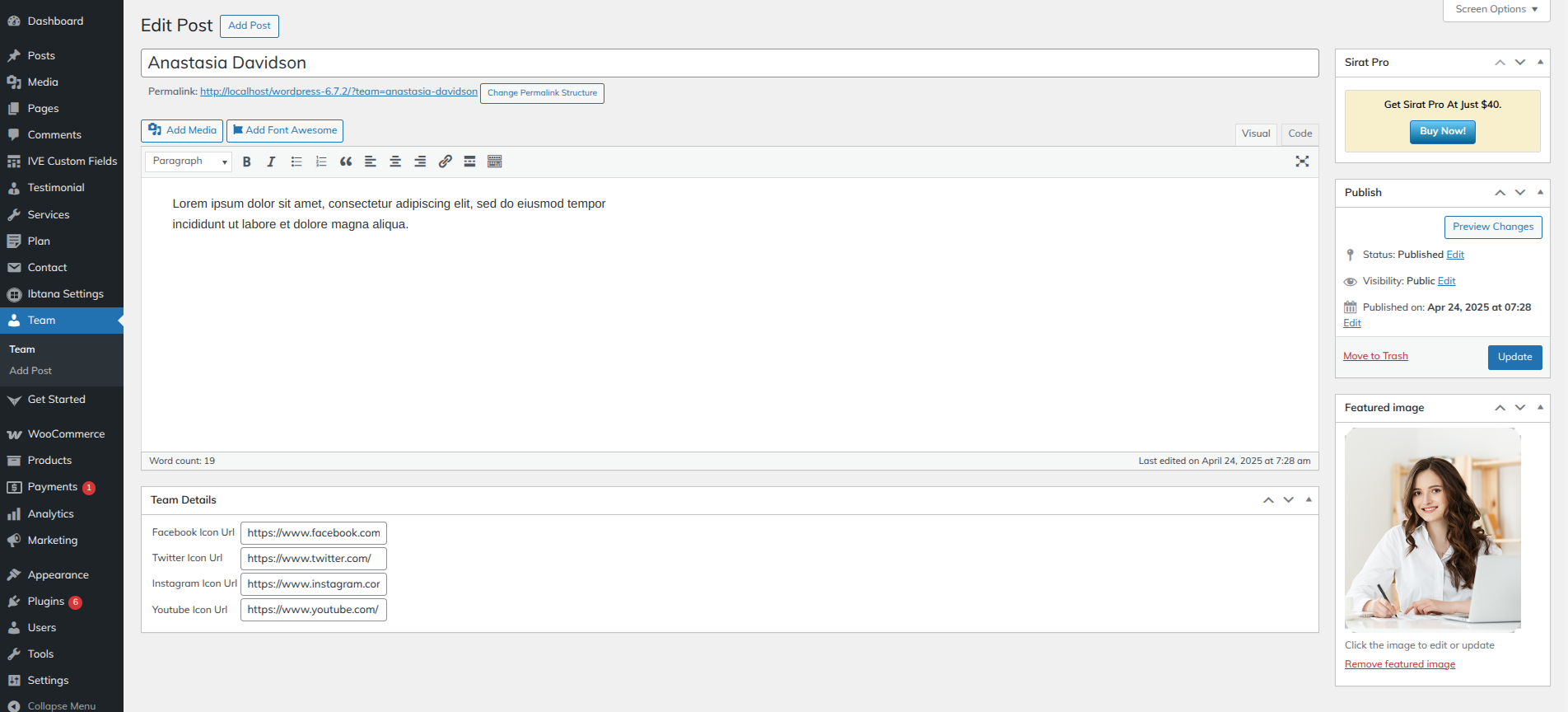 Go to Dashboard >> Team >> Edit
