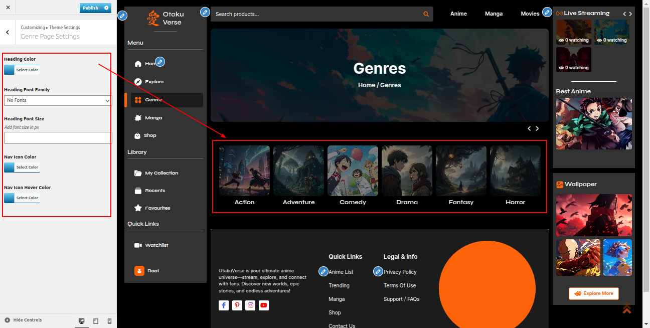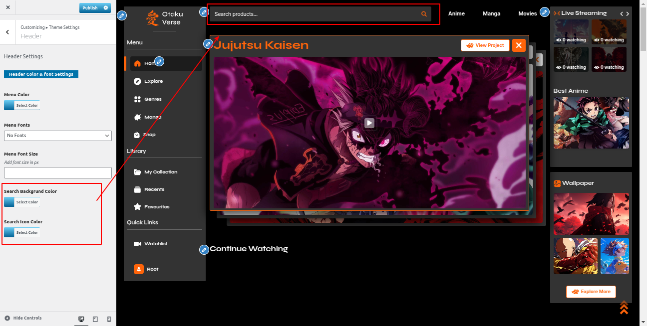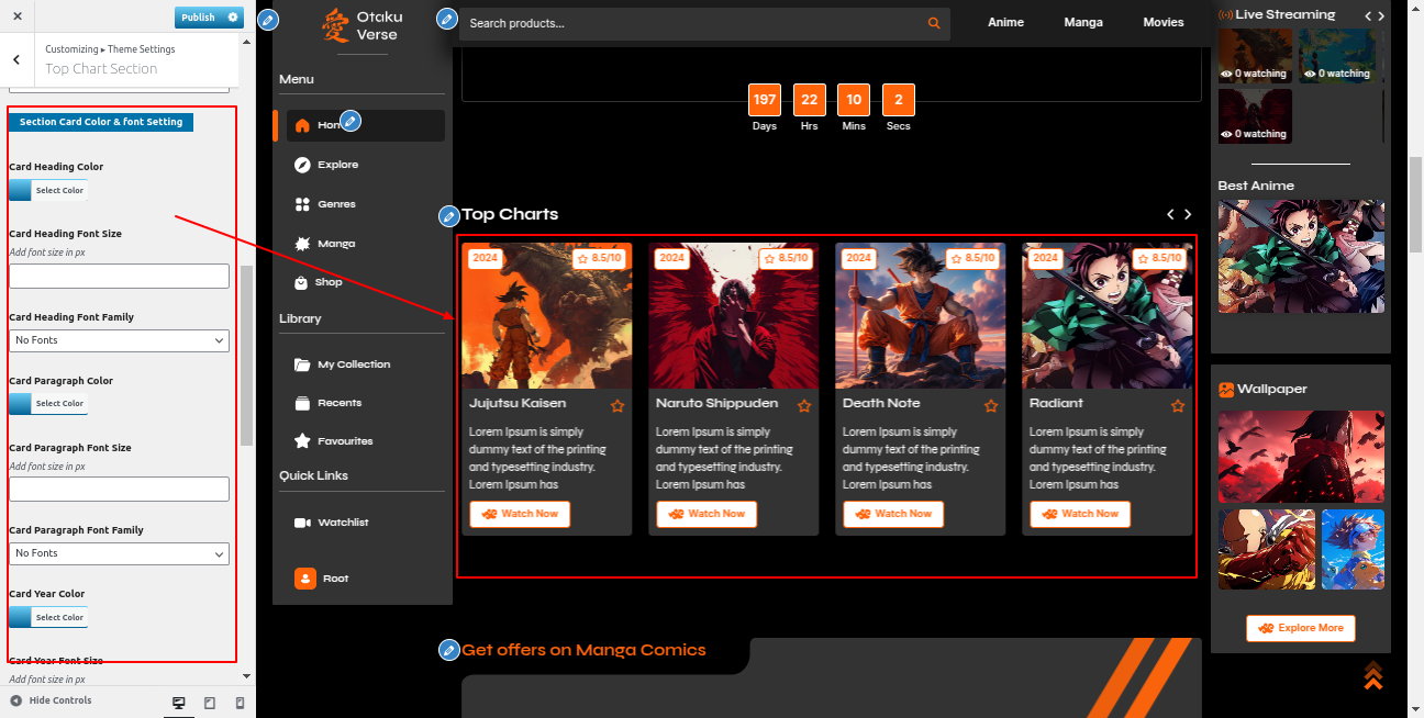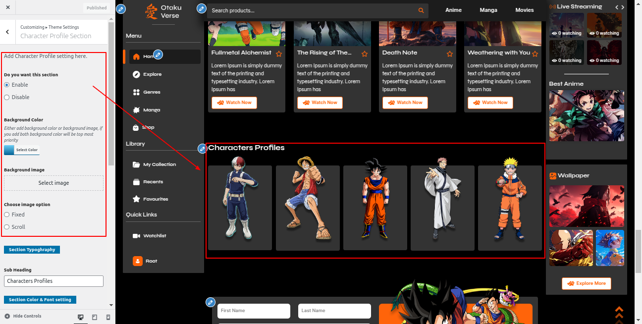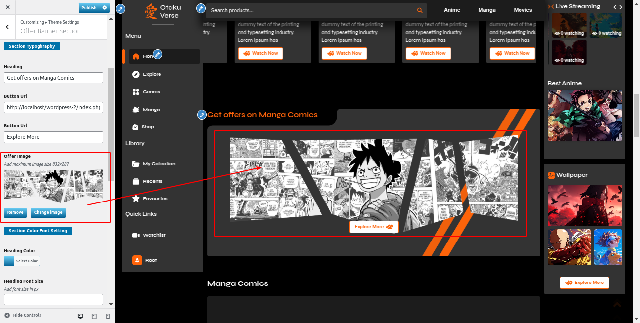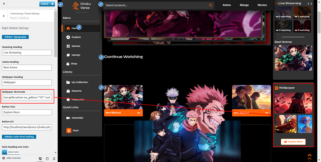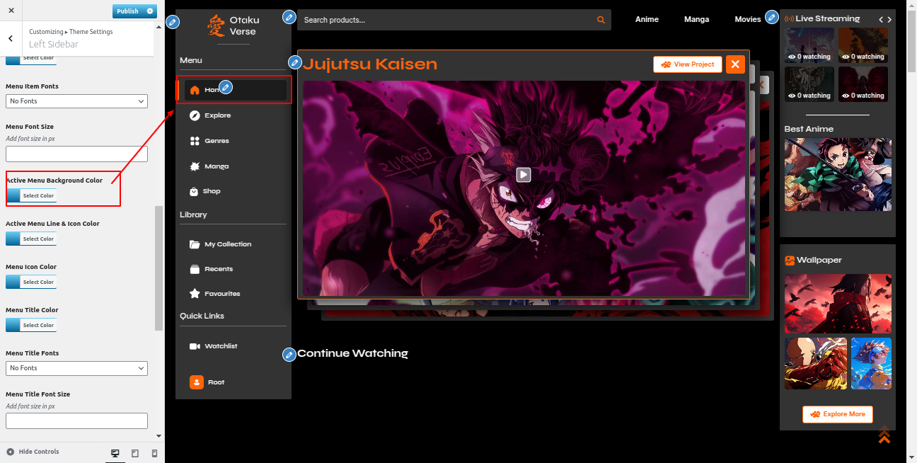 Go to the Appearance >> Customize >> Theme Settings >>Anime Section