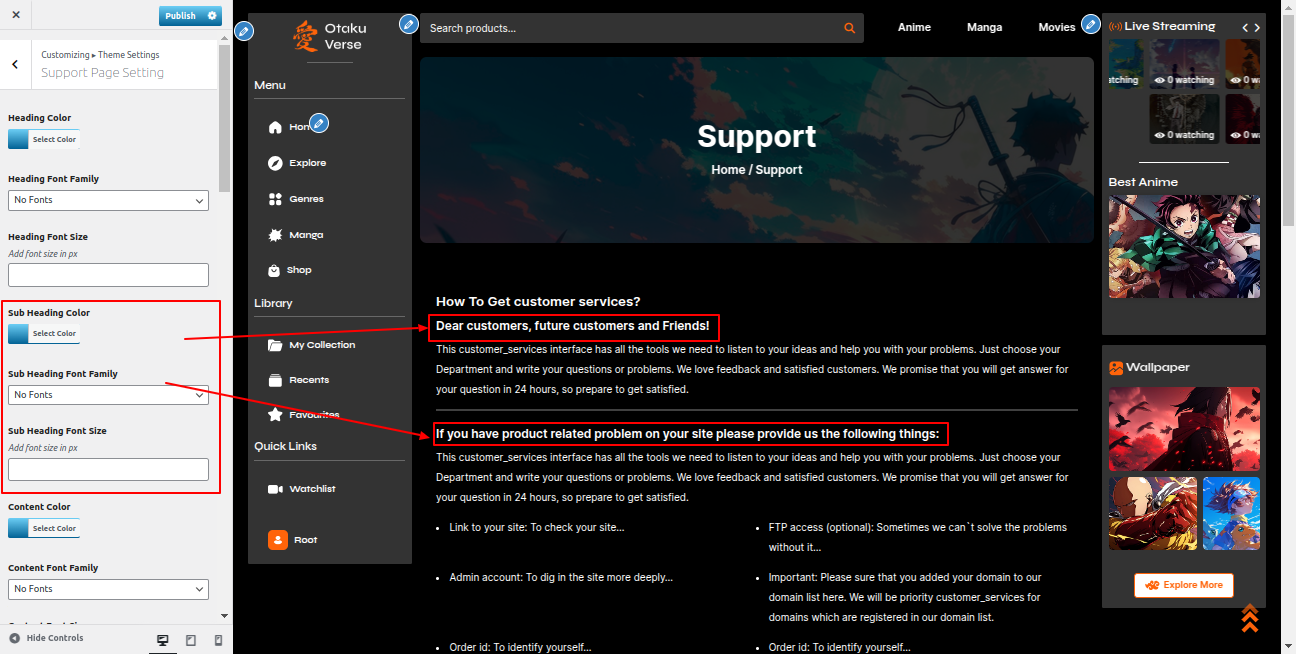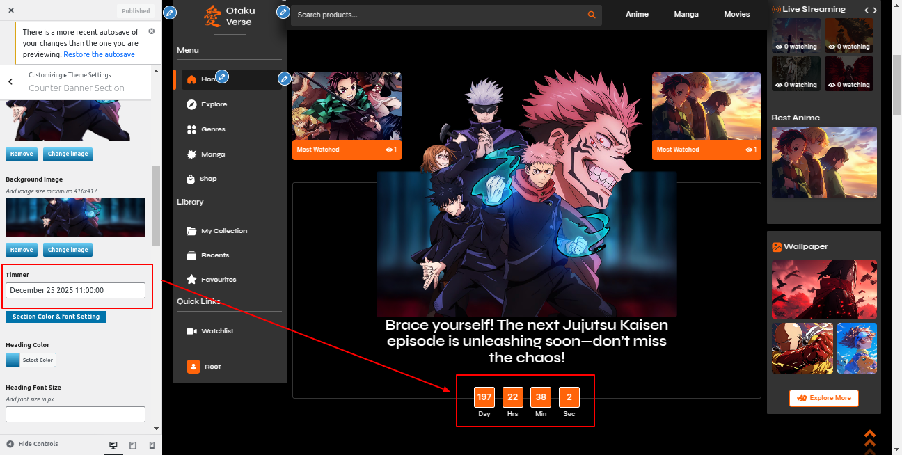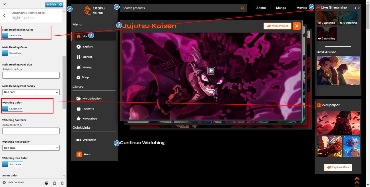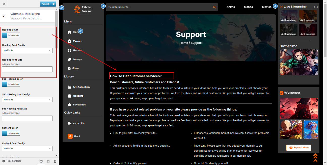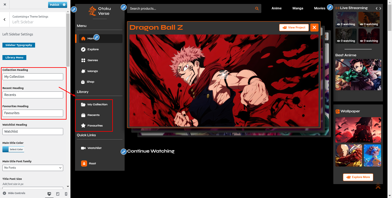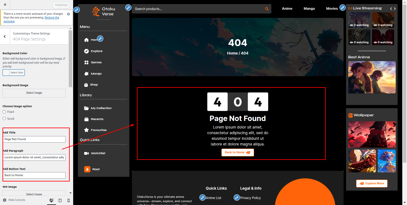 Go to the Appearance >> Customize >> Theme Settings >>Anime Section