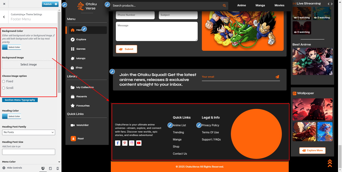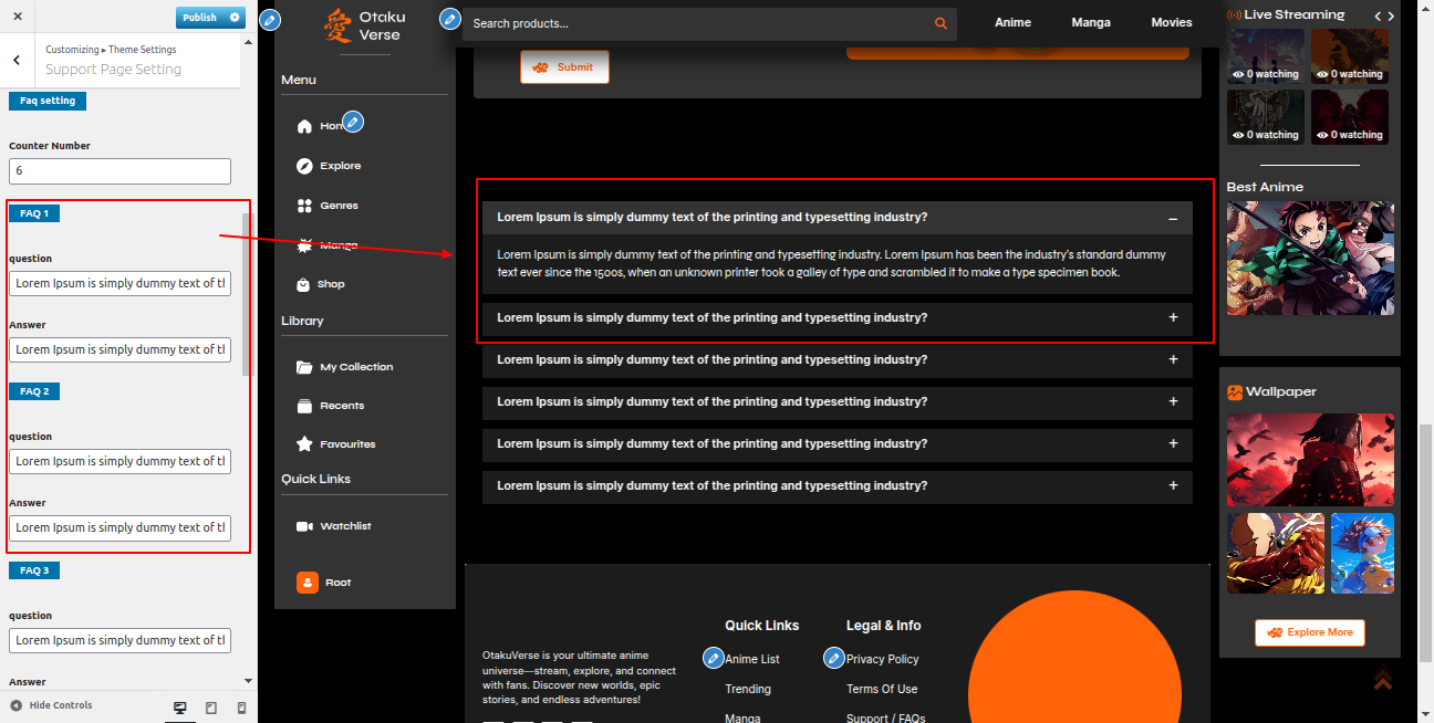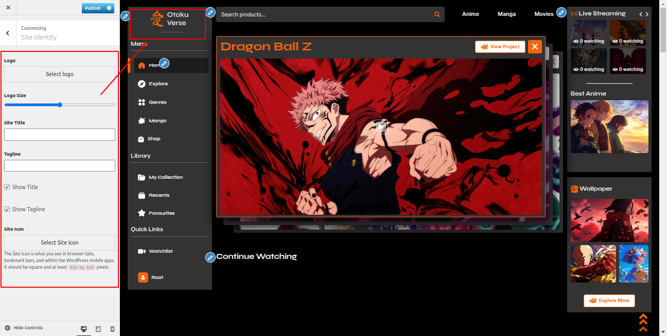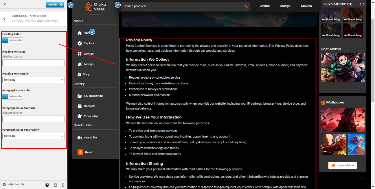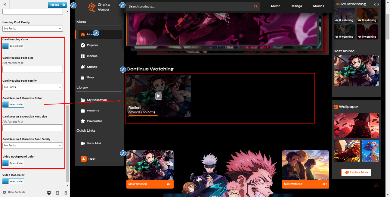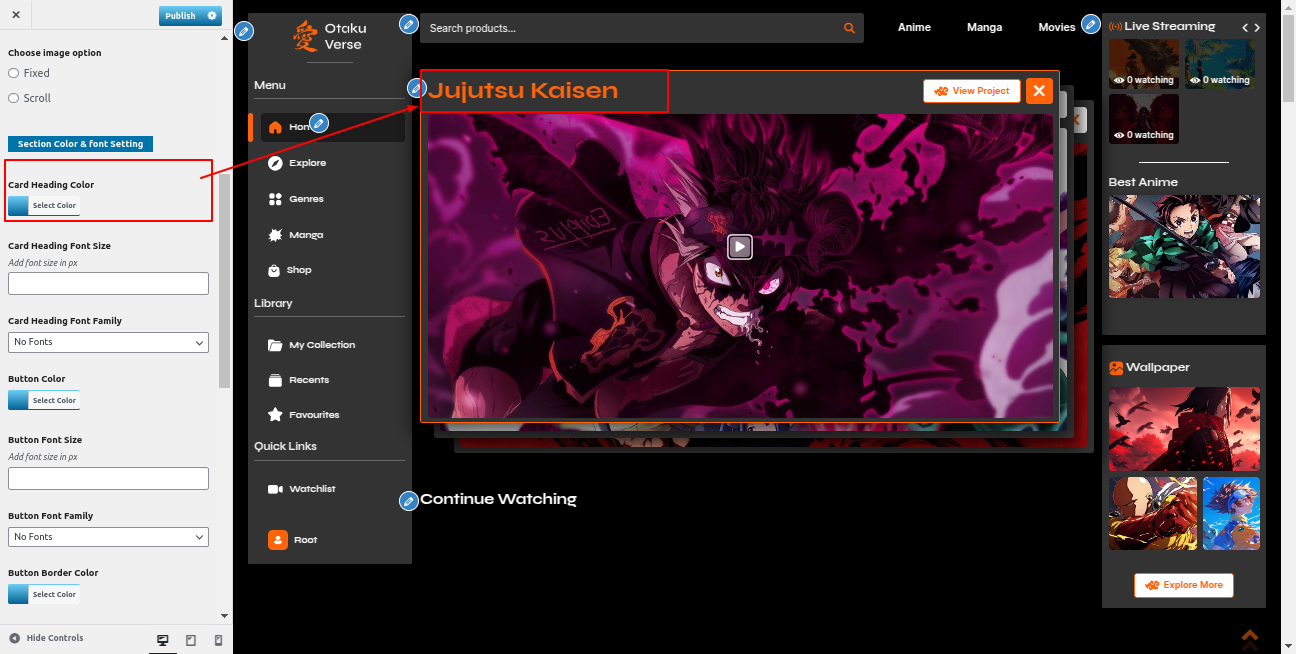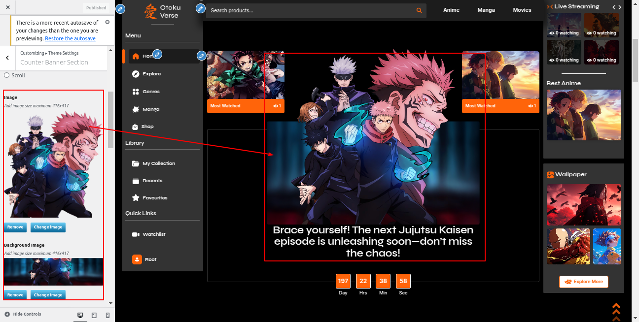 Go to the Appearance >> Customize >> Theme Settings >>Anime Section