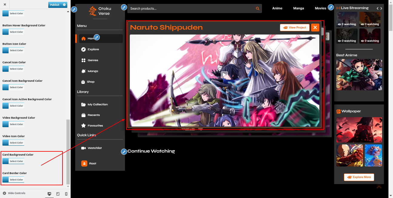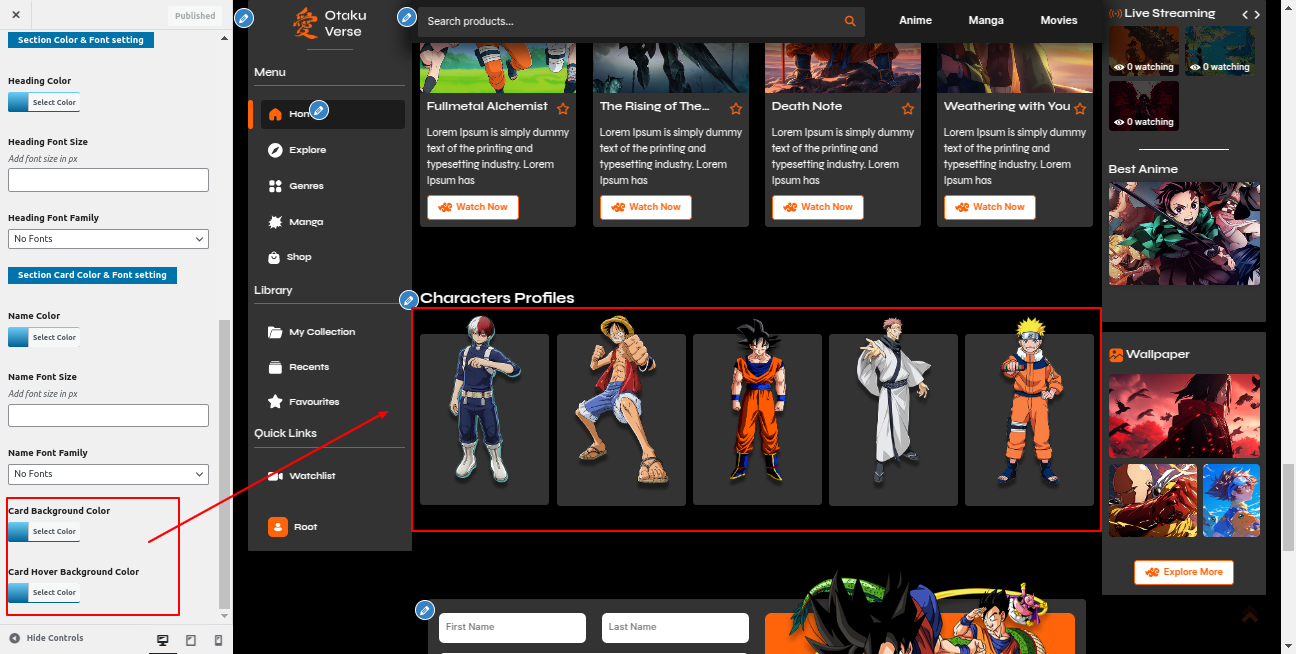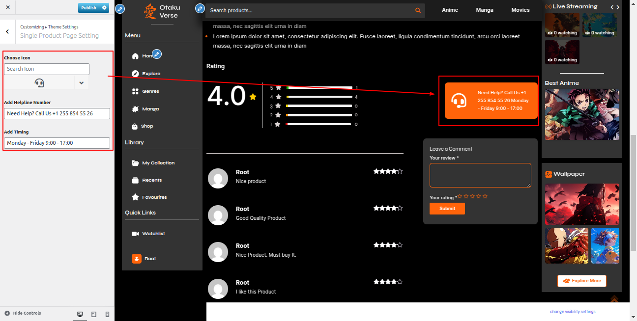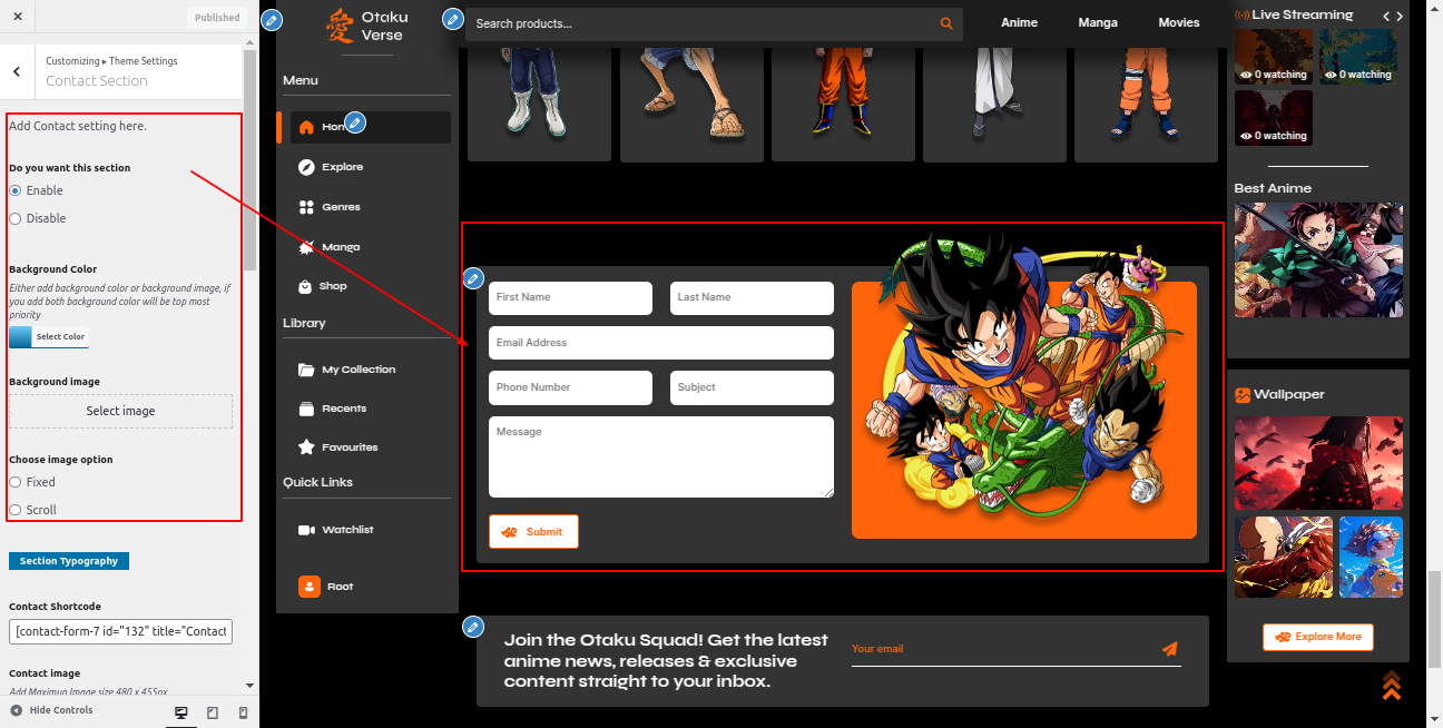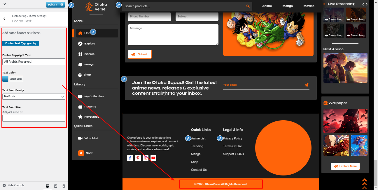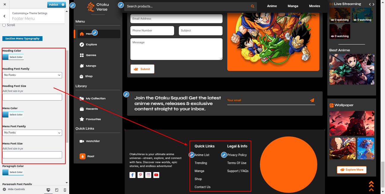Go to the Appearance >> Customize >> Theme Settings >>Anime Section