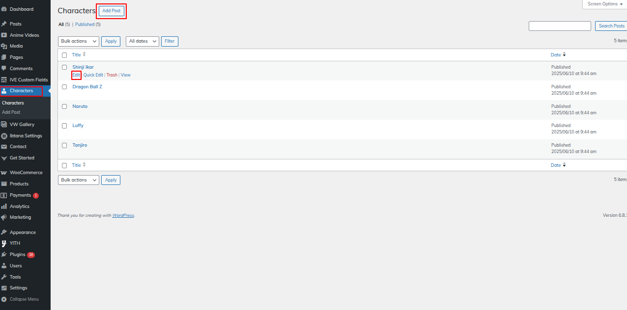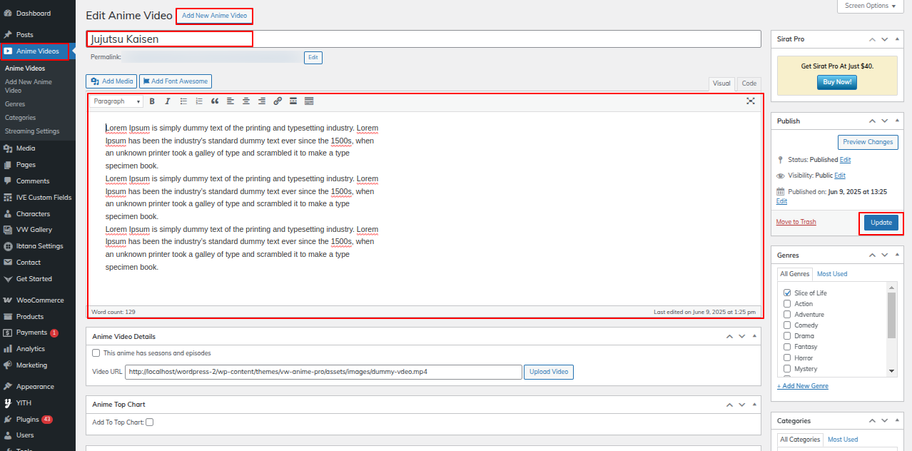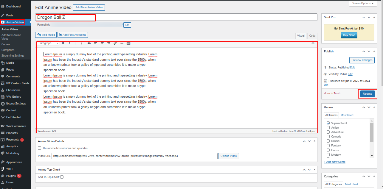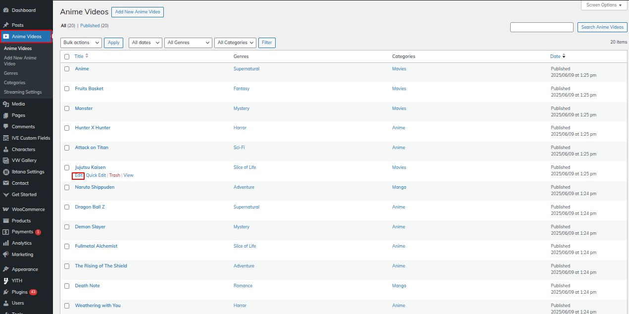 Go to the Dashboard >> Anime Videos >> Edit