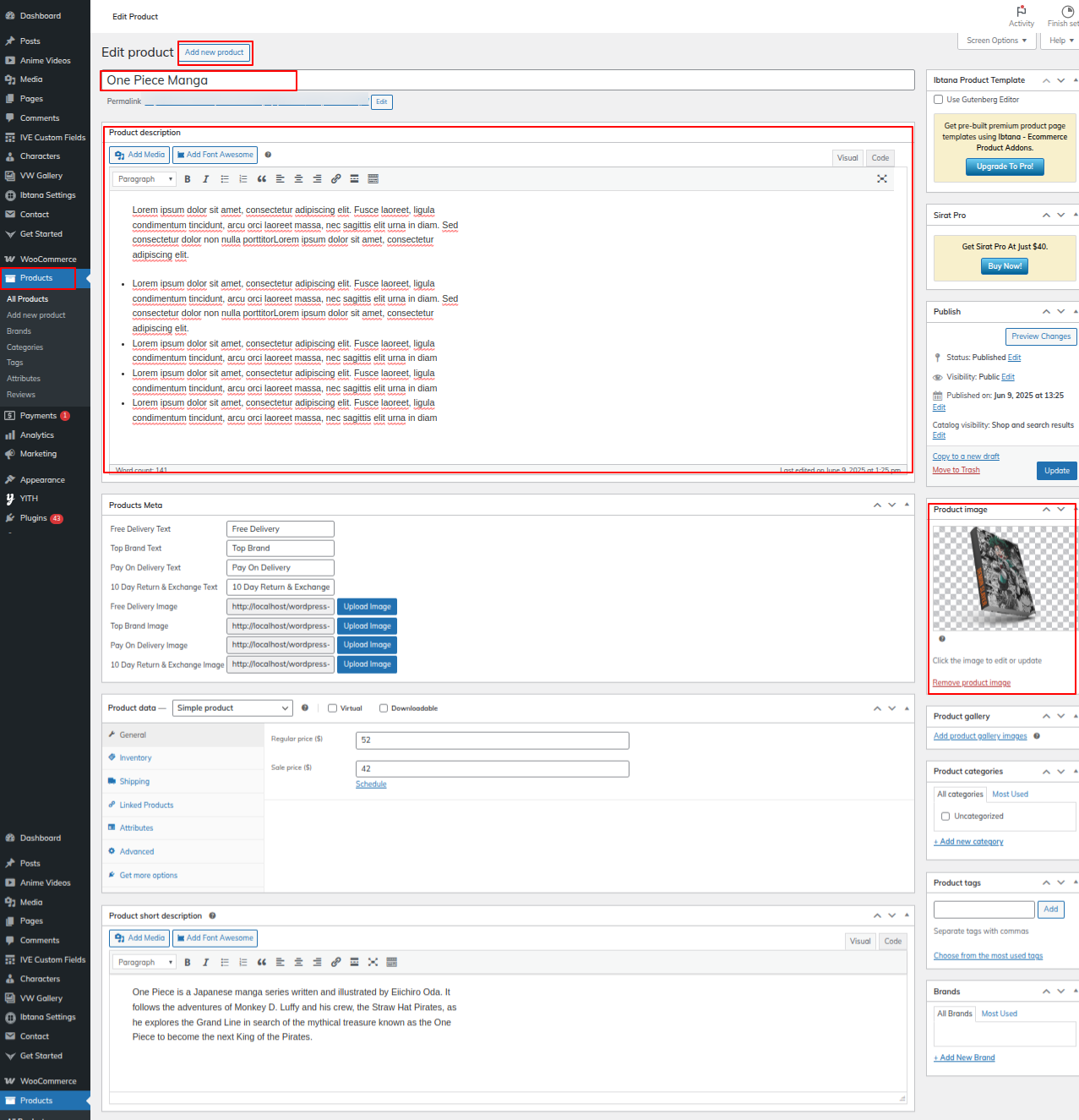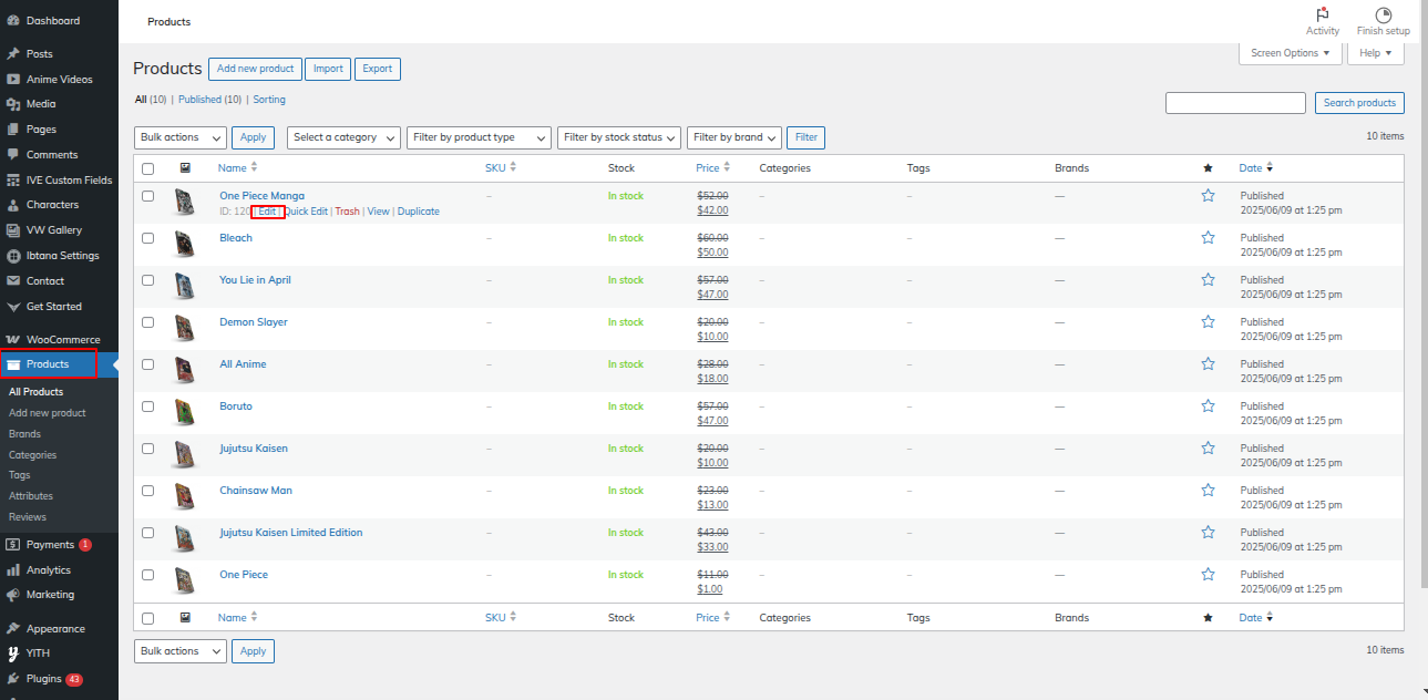 Go to the Dashboard >> Products >> Edit