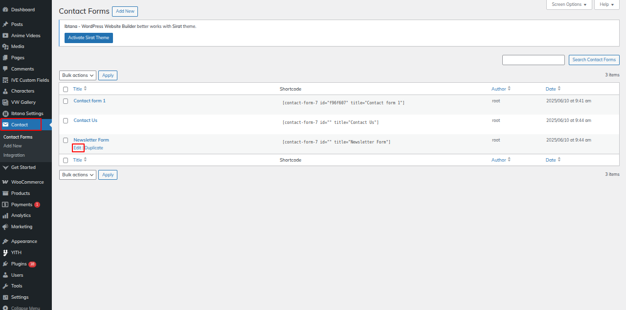 Go to the Dashboard >> Contact >> Edit