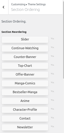 First Step Navigate to Dashboard >> Customize >> Theme Settings >> Section Ordering