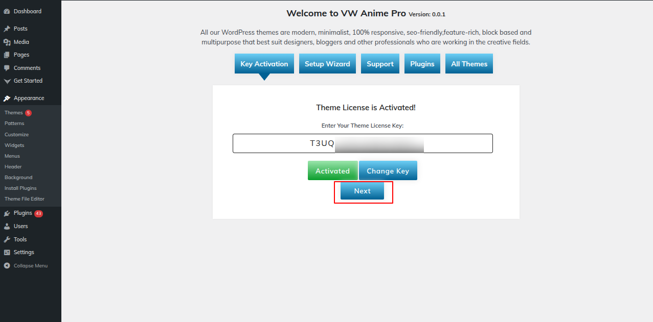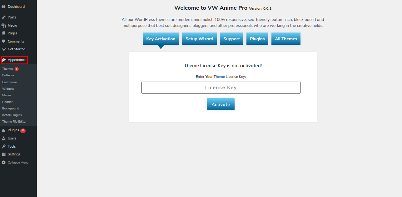 To activate Total, log into your WordPress website and Go to the the Appearance tab >> Themes.