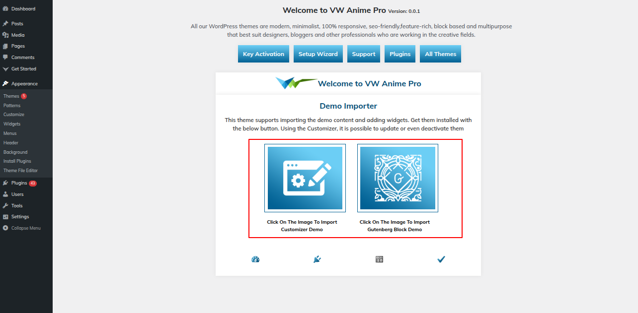 2. Import your demo content based on Gutenberg.