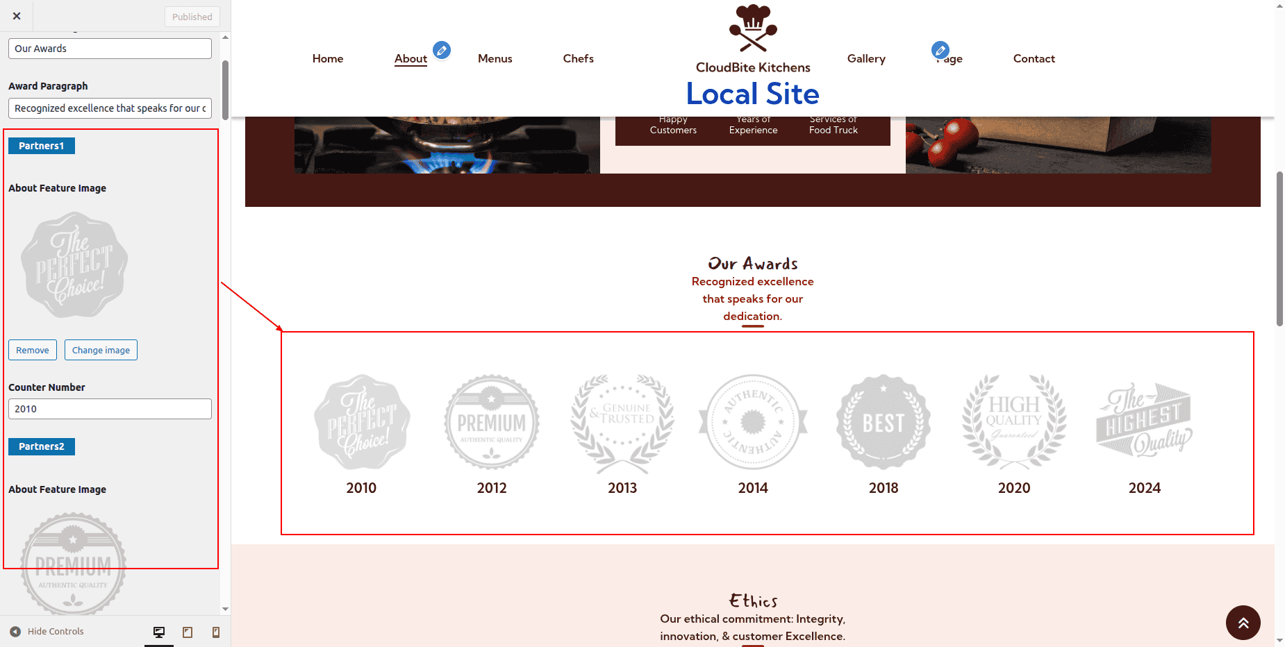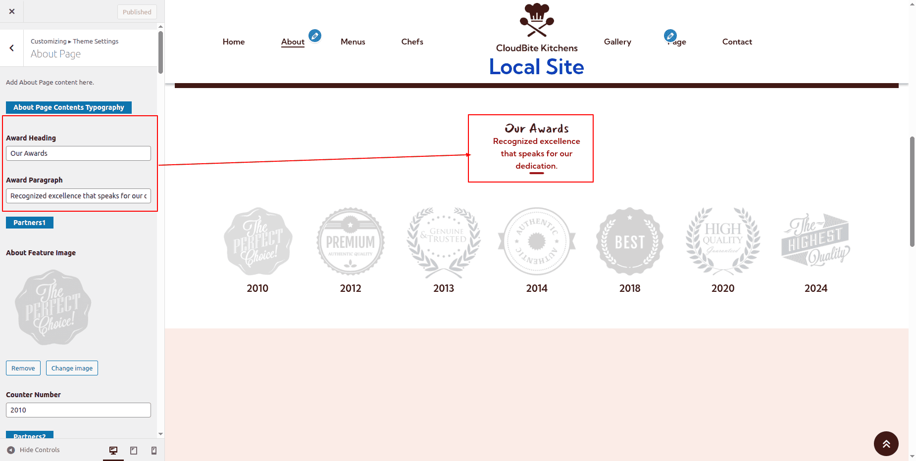To proceed with the About Page Section.