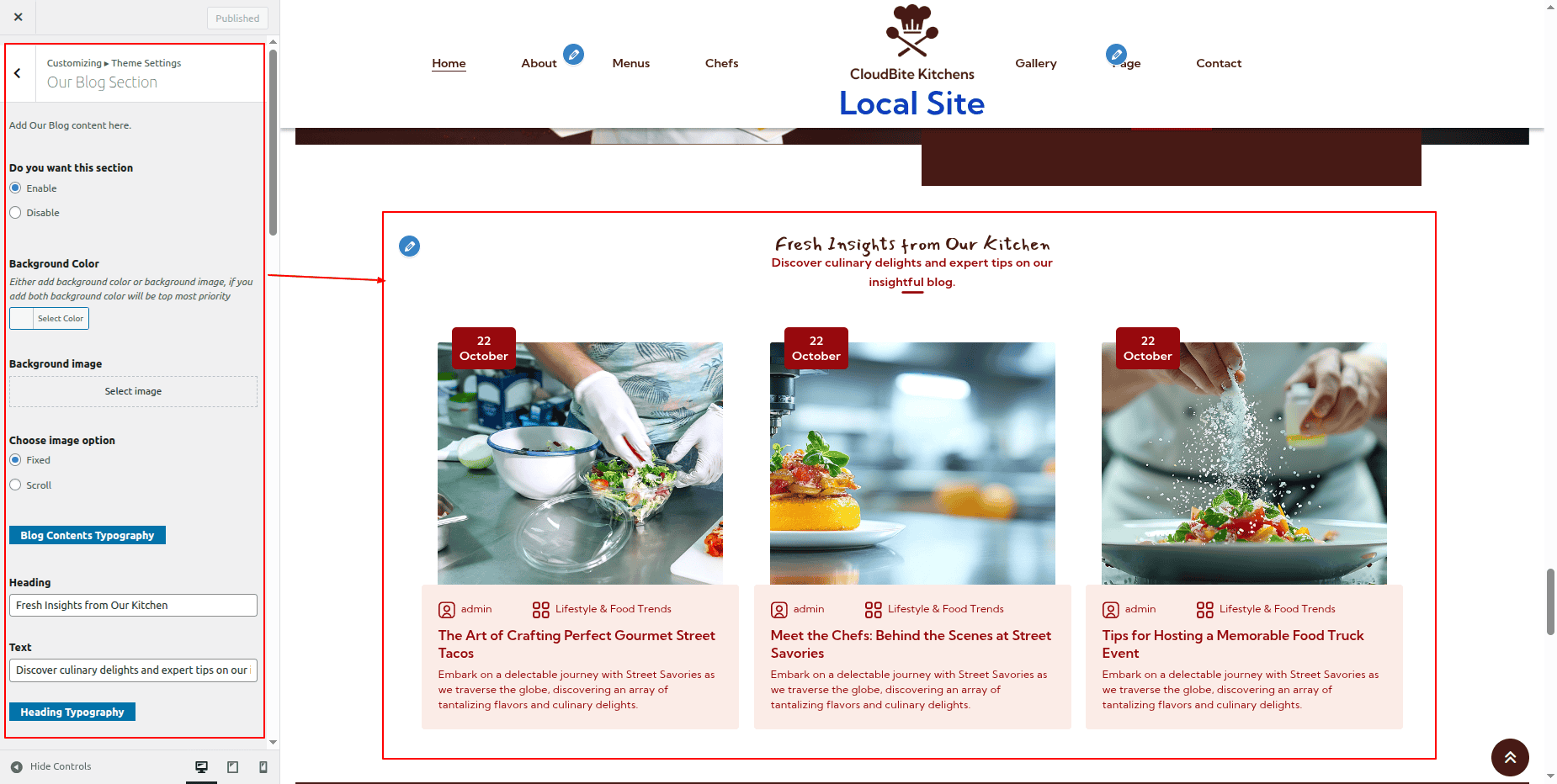 Observe these instructions to set up Blog Section.