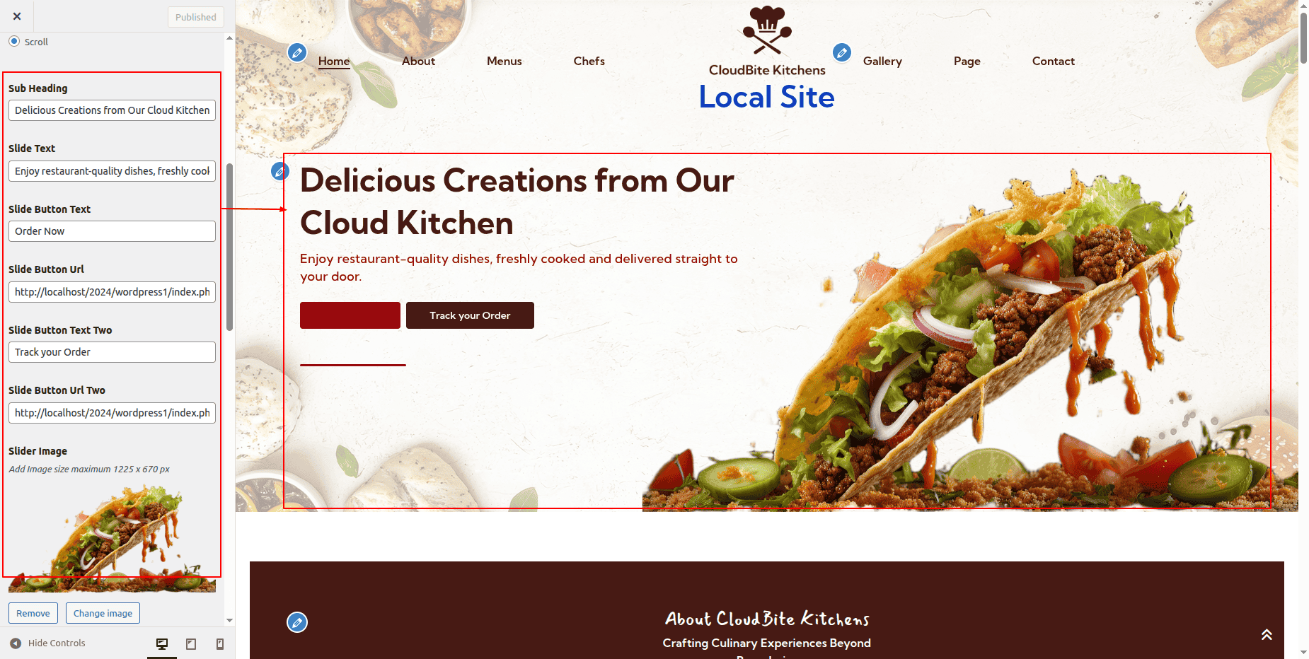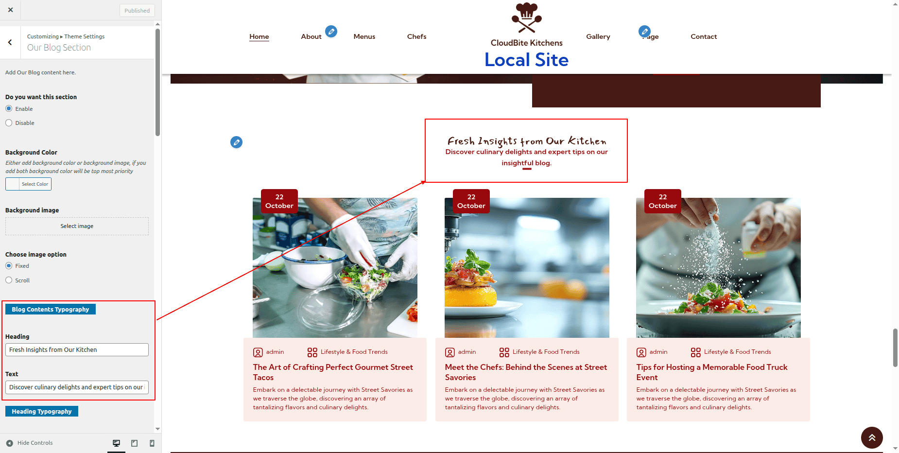 Go to Appearance >> Customize >> Theme Settings >> CloudBite Section