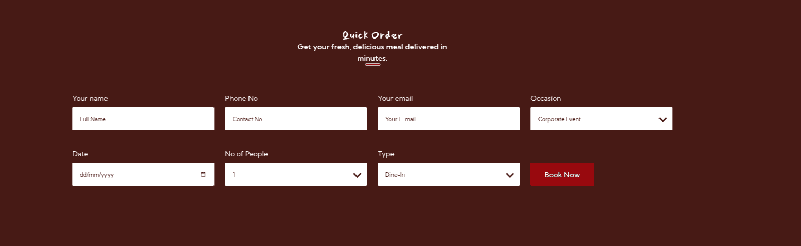 To proceed with the Our Menu Section.