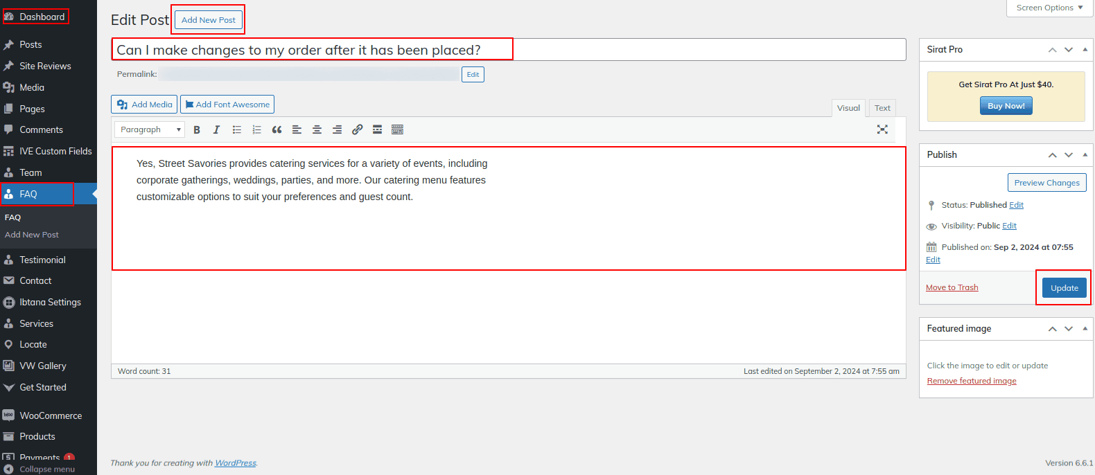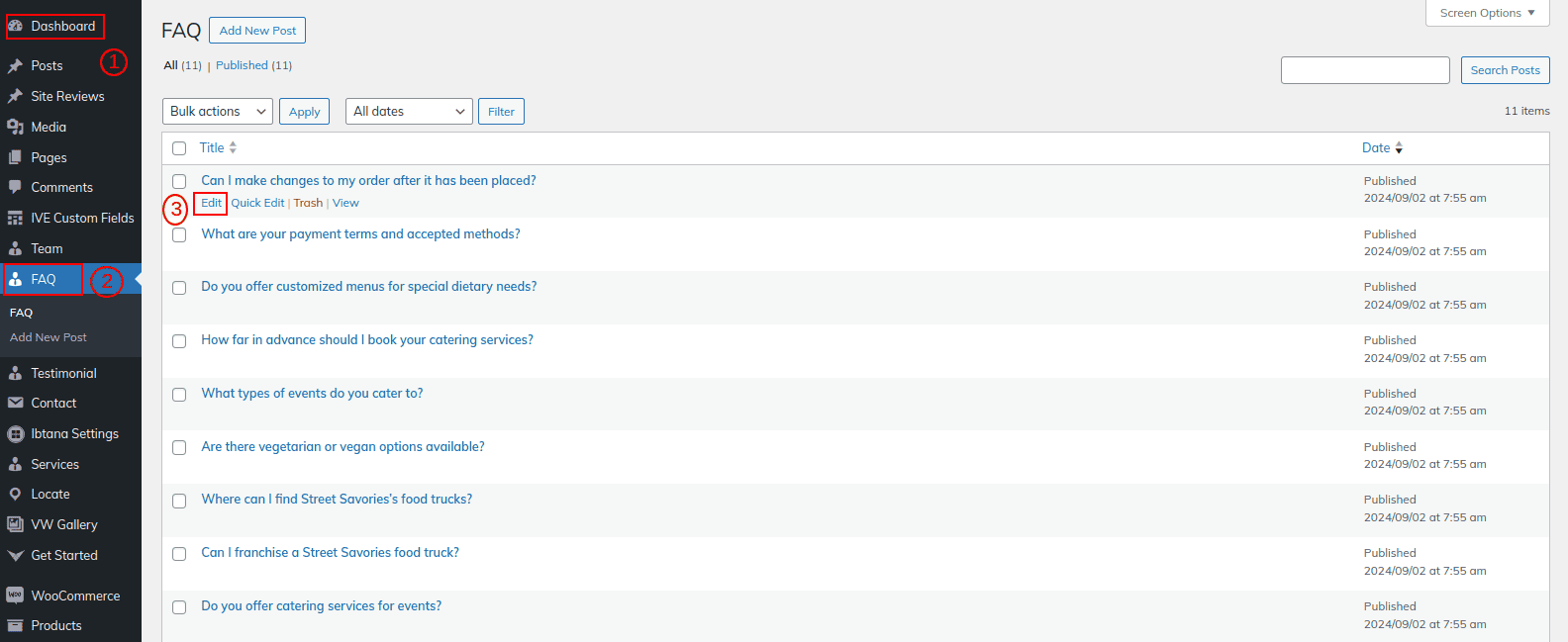 Go to Dashboard >> Faq >> Edit