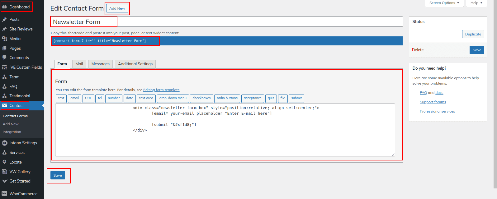 Observe these instructions to set up Contact Us Section.