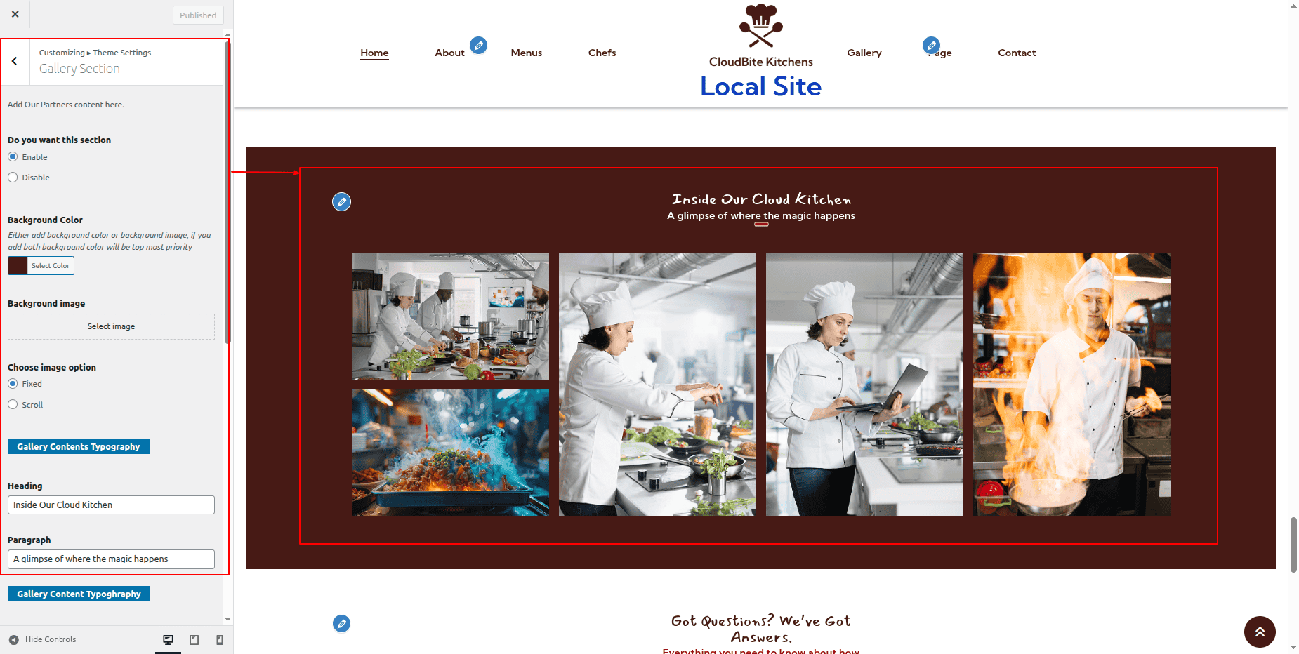 You can configure the Final Gallery Section in this way.