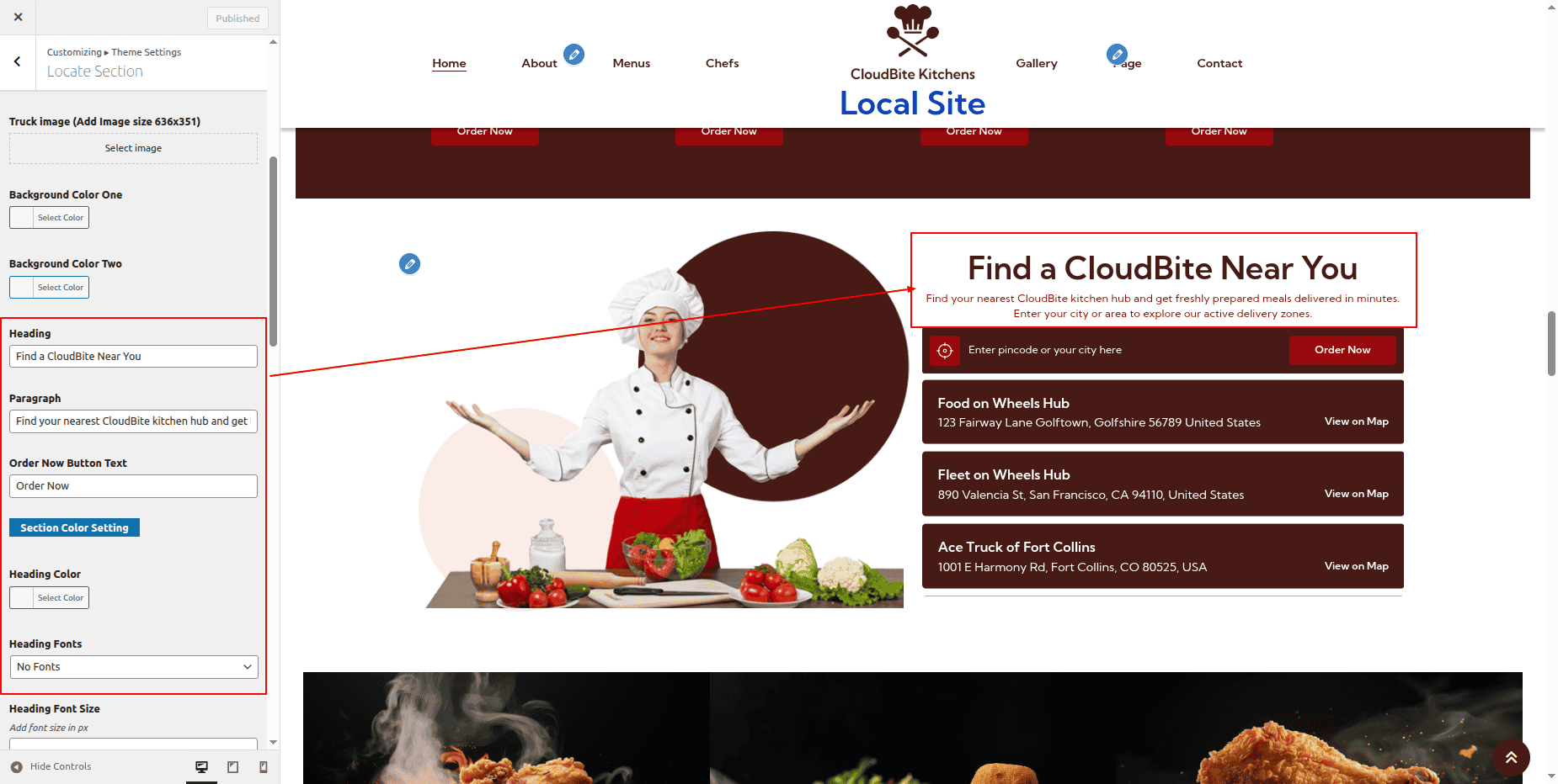 Go to Appearance >> Customize >> Theme Settings >> Our Menu Section