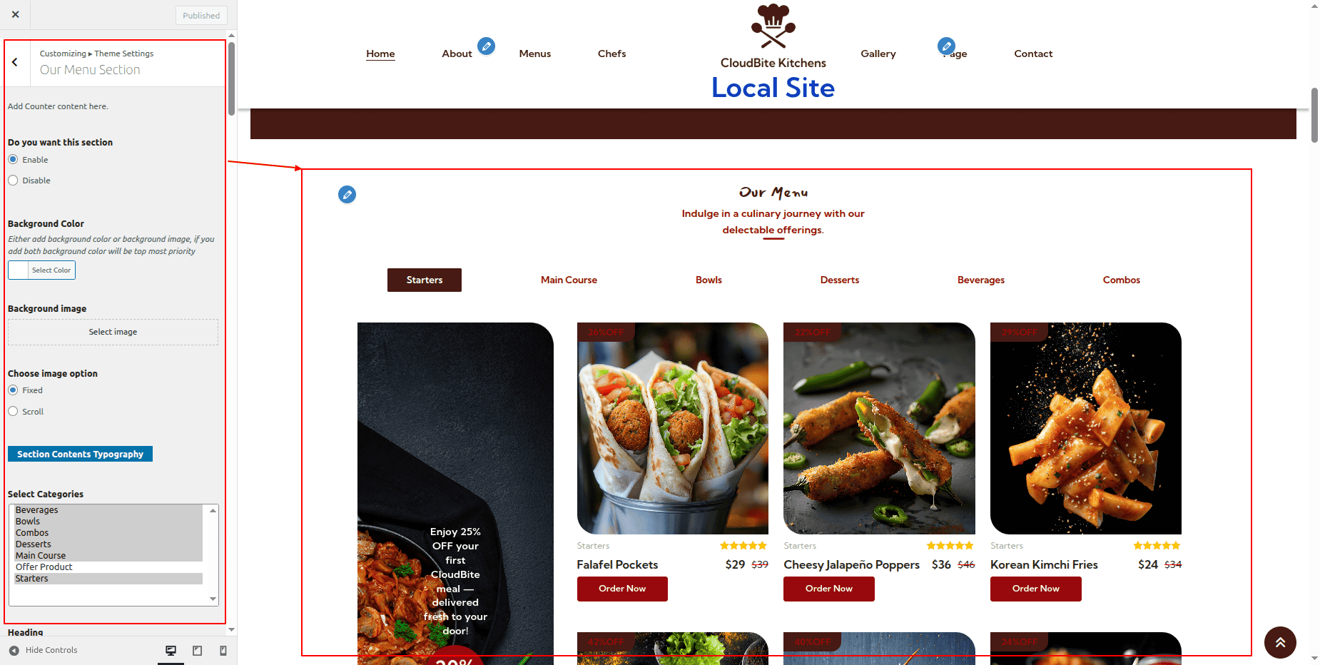 Select the category of Our Menu Section.