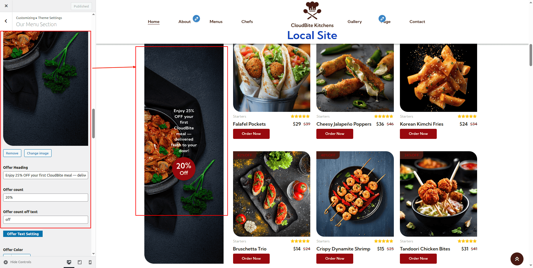 Go to Appearance >> Customize >> Theme Settings >> Offer Section