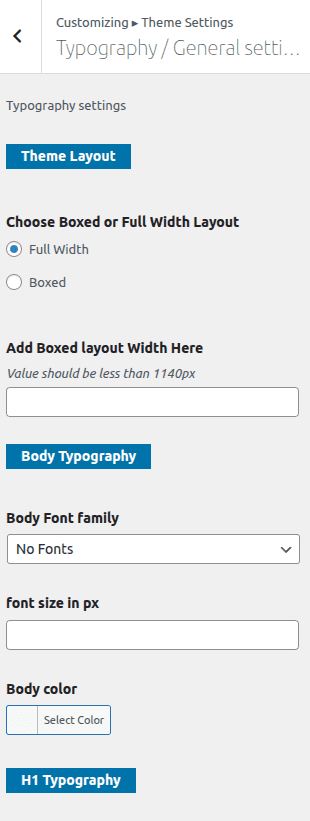 The method of changing the colour or font is quite simple. These choices are available in all customizer areas. It is a comprehensive graphic that demonstrates the typeface and colour palette. You can change the colour and font of the headings, paragraphs, and buttons with a single glance or click.