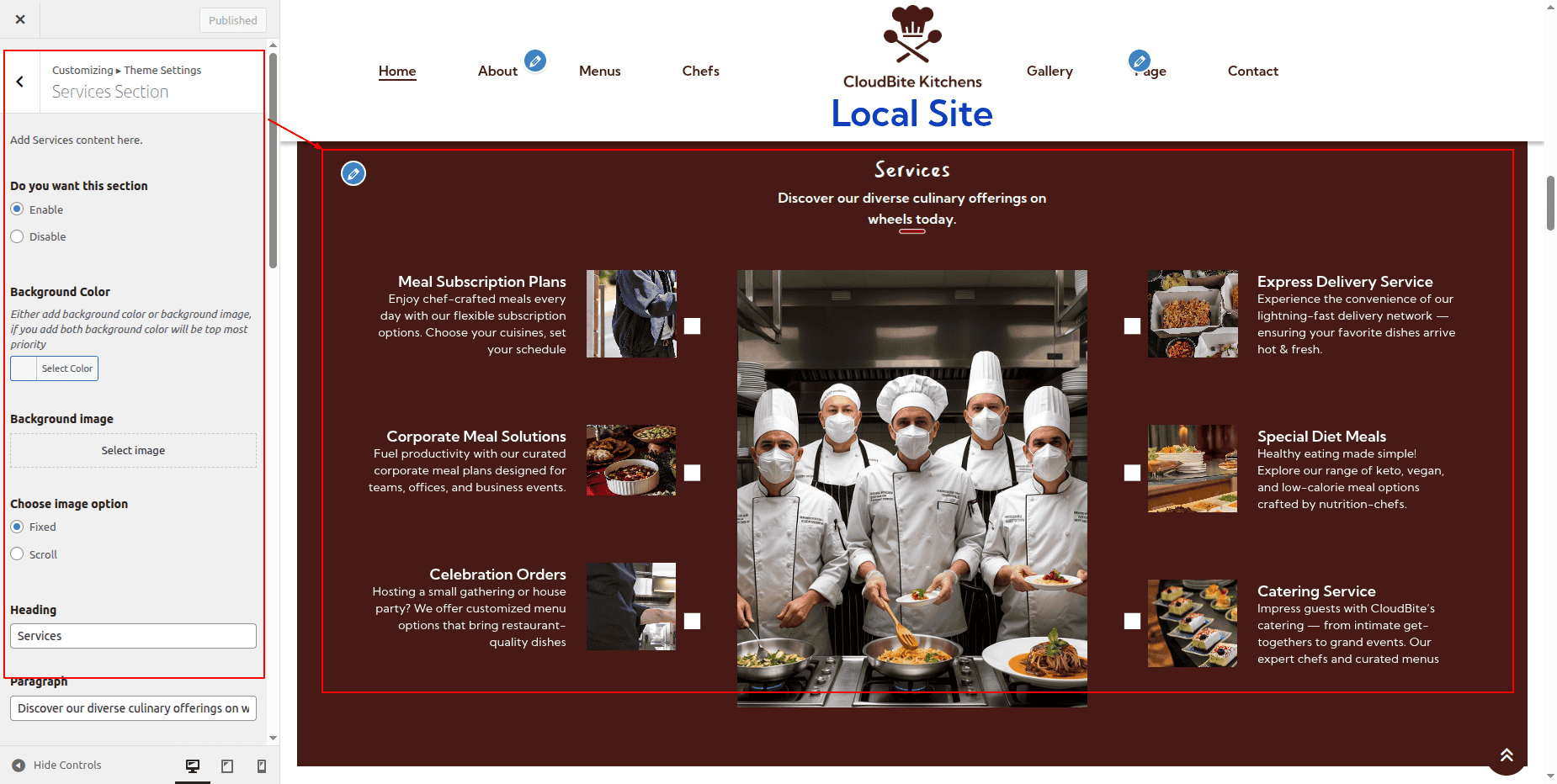 Go to Appearance >> Customize >> Theme Settings >> Services Section