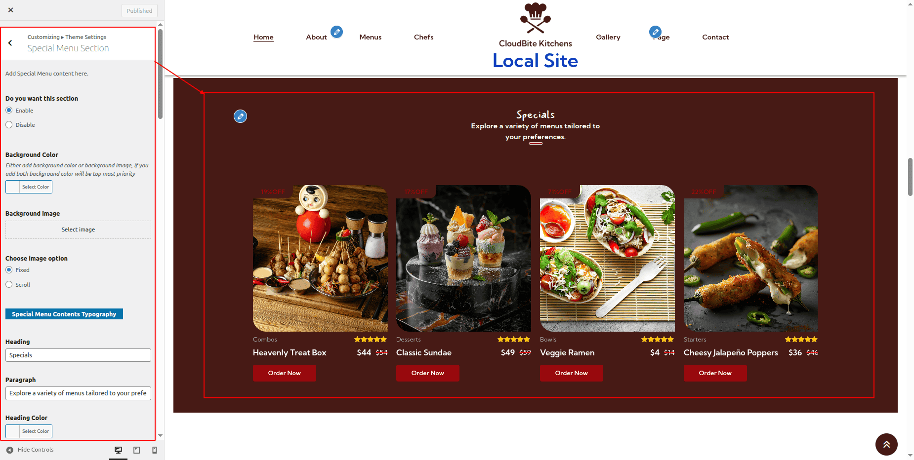 8.9 Special Menu Section