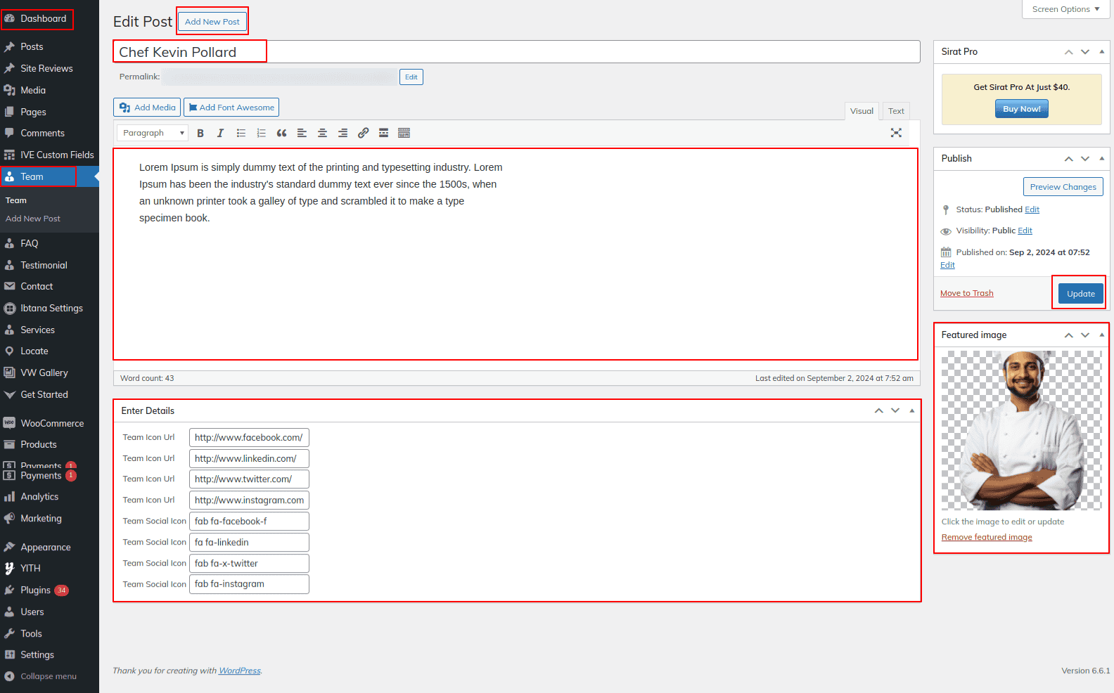 Go to Dashboard >> Team >> Edit