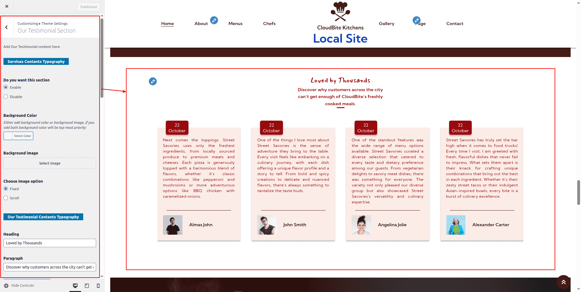 You can configure the Final Testimonial Section in this way.