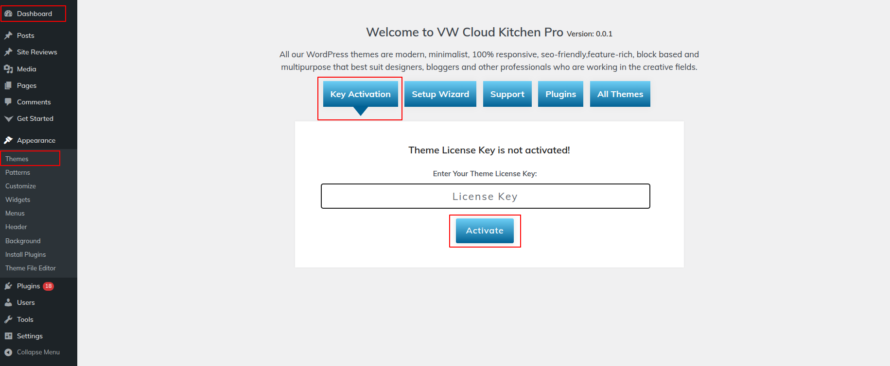 To activate Total, log into your WordPress website and go to Appearance >> Themes.