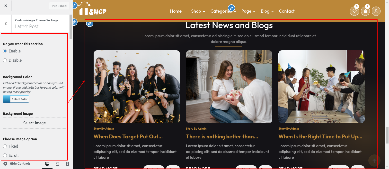 Go to Appearance >> Customize >> Theme Settings >>Latest Post Section.