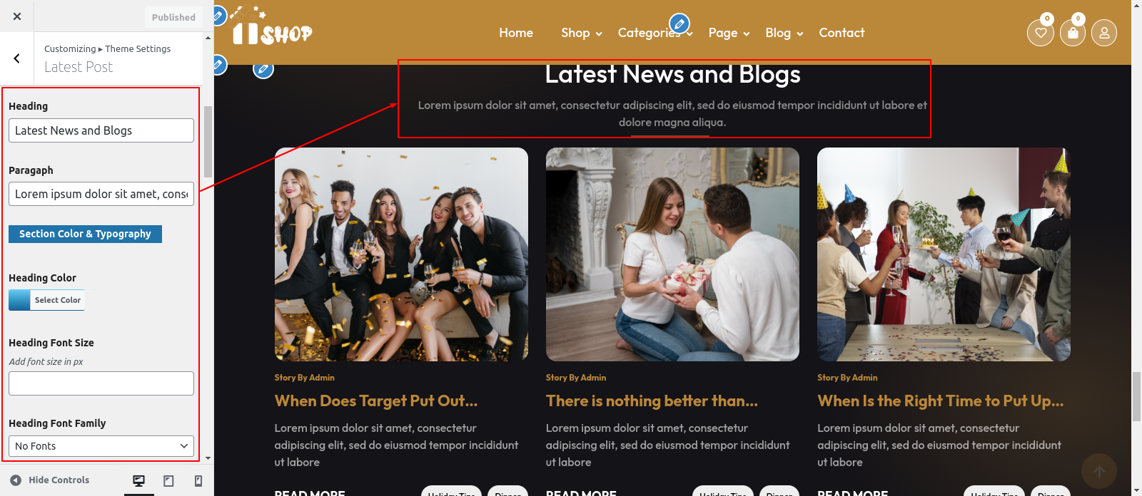 The method of changing the colour or font is quite simple. These choices are available in all customizer areas. It is a comprehensive graphic that demonstrates the typeface and colour palette. You can change the colour and font of the headings, paragraphs, and buttons with a single glance or click.
