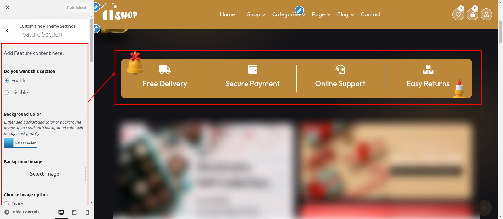 Go to Appearance >> Customize >> Theme Settings >>Feature Section