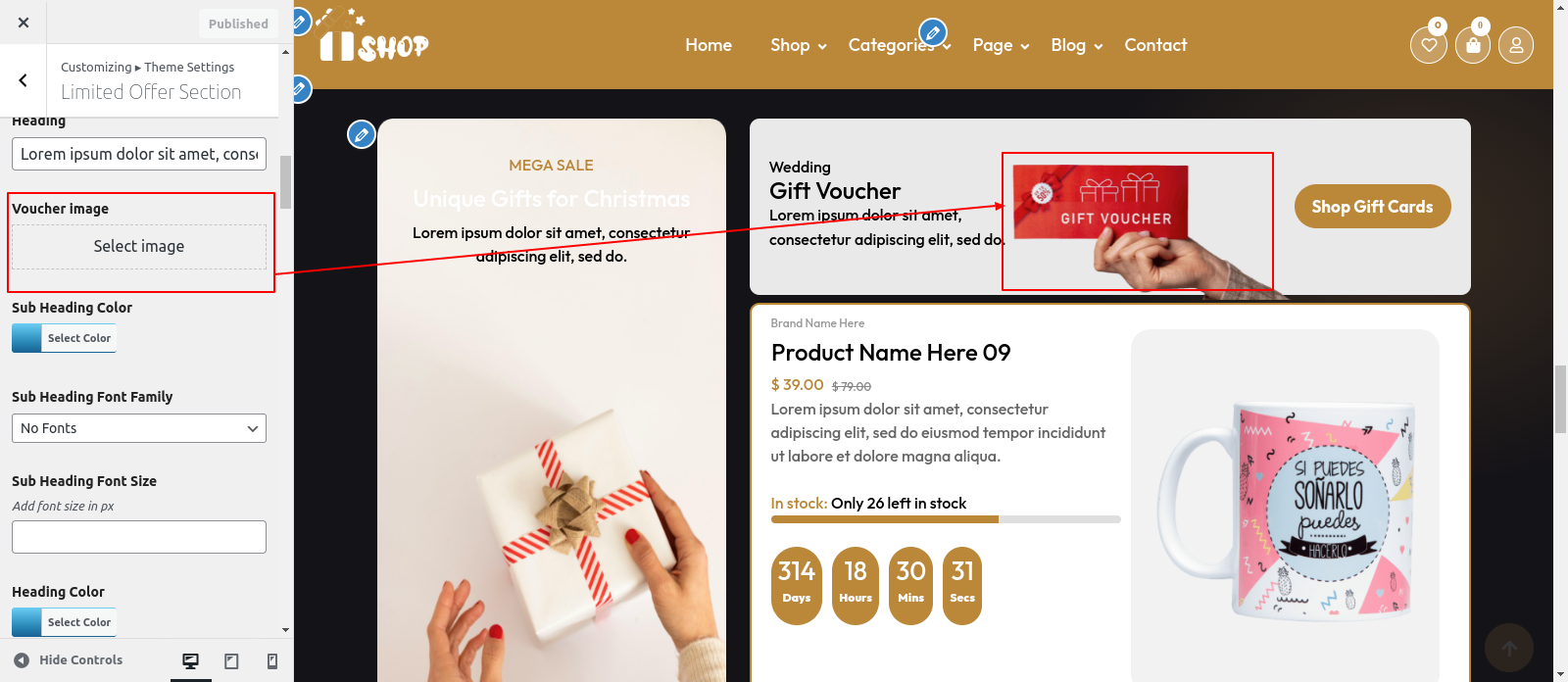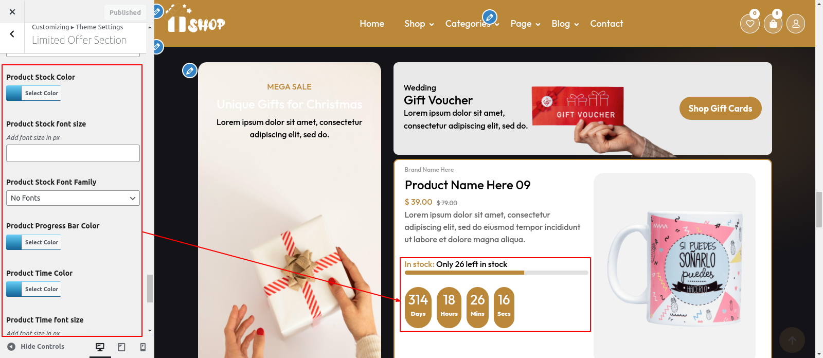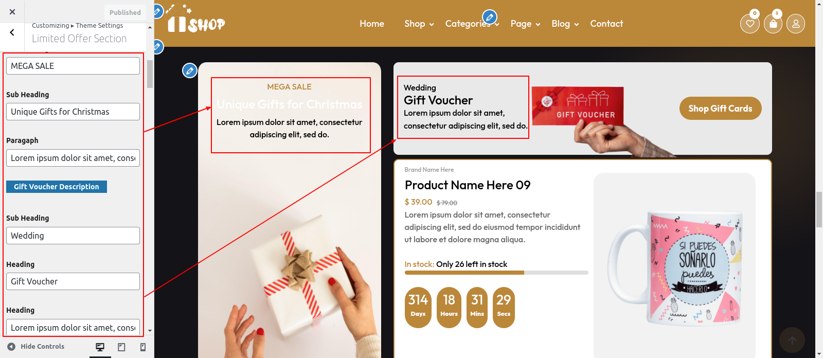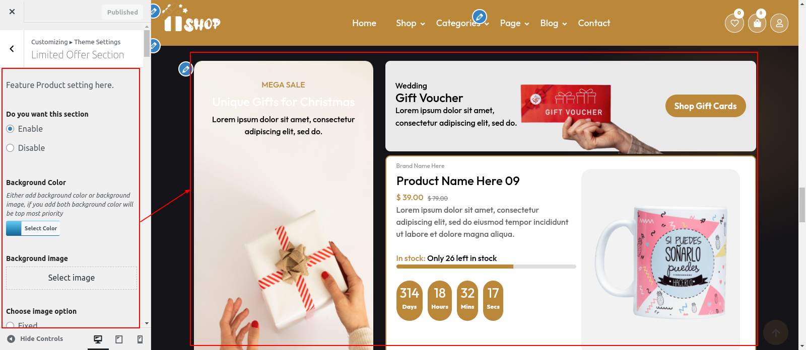 Go to Appearance >> Customize >> Theme Settings >> Limited Offer Section.